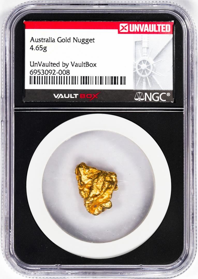 One 4.65 Gram Australia Gold Nugget NGC Vaultbox Unvaulted. NGC Certified.