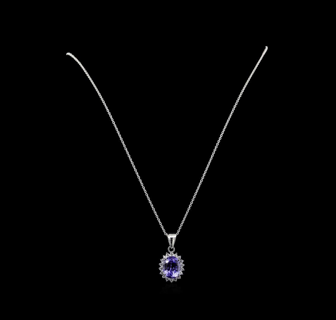 One pendant with chain featuring: 14KT white gold weighing 2.95 grams containing Tanzanite with a total weight of 4.65ct and diamonds with a total weight of 0.44ctw.