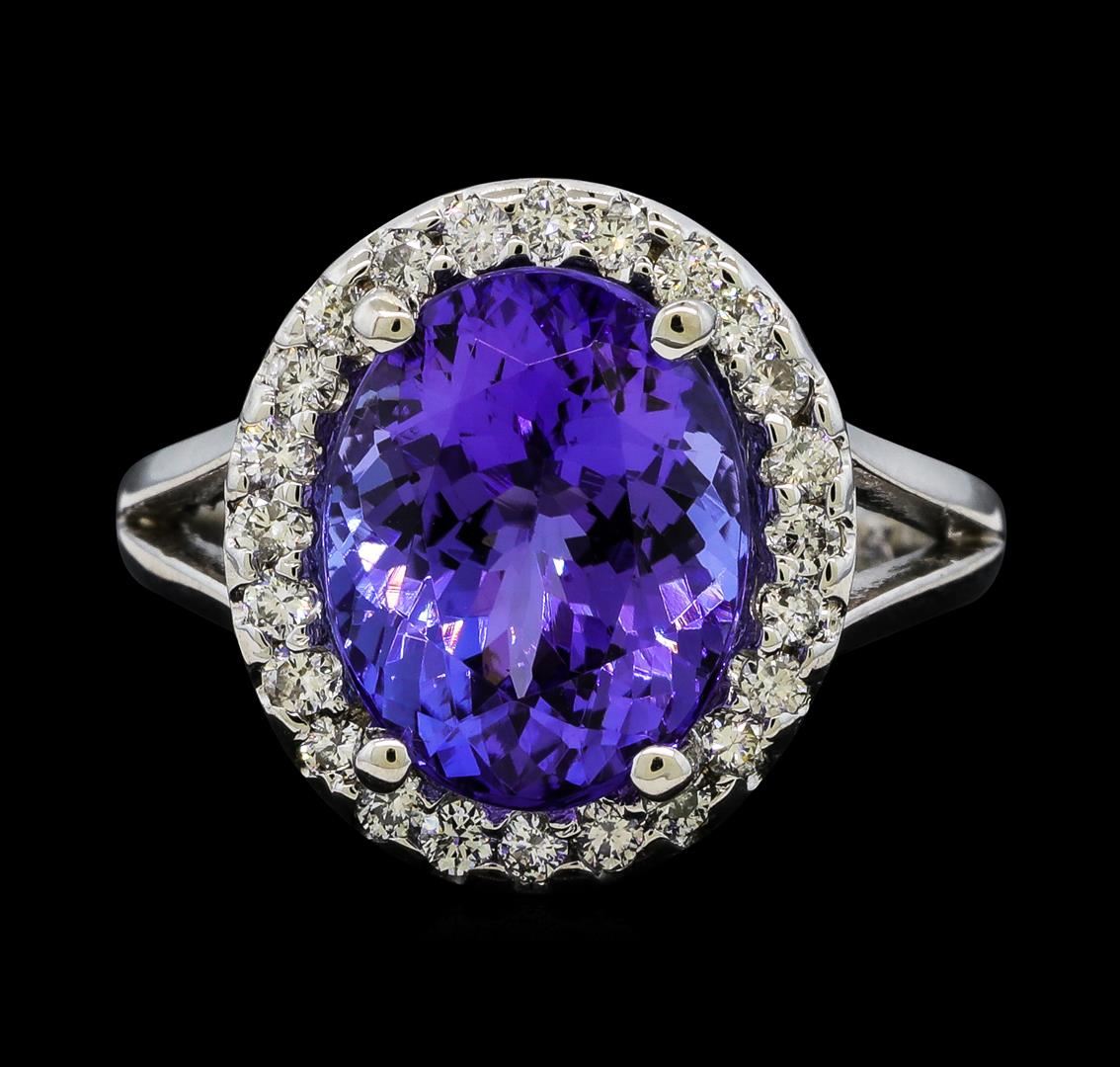 One Tanzanite and Diamond Ring including: 14KT White Gold weighing a total of 4.23 grams, Tanzanite weighing a total of 4.65ct, and 24 Diamonds weighing a total of 0.33ctw.