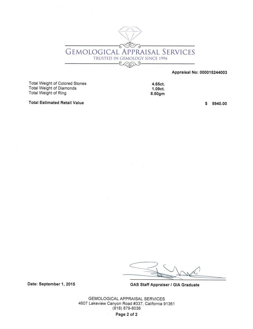 Not all Jewelry, watches or loose stones are appraised and the appraisals are provided for bidders only in certain instances at the discretion of SAA. Our appraisals are conducted by independent third-party appraisal firms. Such firms may be certified GIA Gemologists or have education in the industry or alternative certifications. Appraisals should be used for verification of gemstone and/or metal weight, size, and grade only, not actual value for resale or insurance purposes. Appraisal value should be not considered for actual value, as price varies greatly from retail locations and other merchants in different geographic locations. All Items auctioned by SAA should not be purchased with a view or expectation toward resale for appraisal price given, or to make a profit. The ultimate value for which an item can be resold may vary drastically from the appraisals listed by SAA.