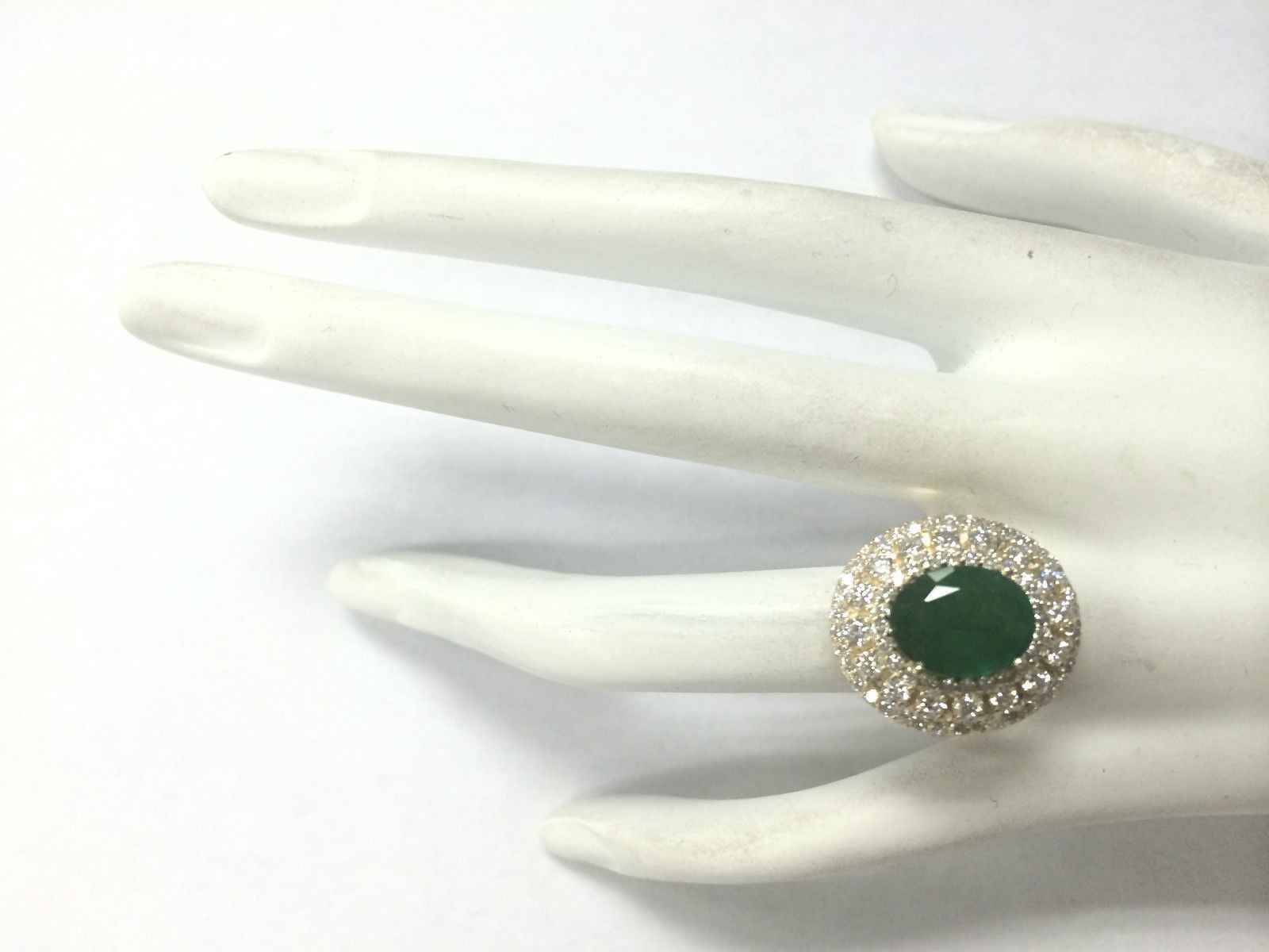 4.66 CTW Natural Emerald And Diamond Ring 18K Solid Yellow Gold