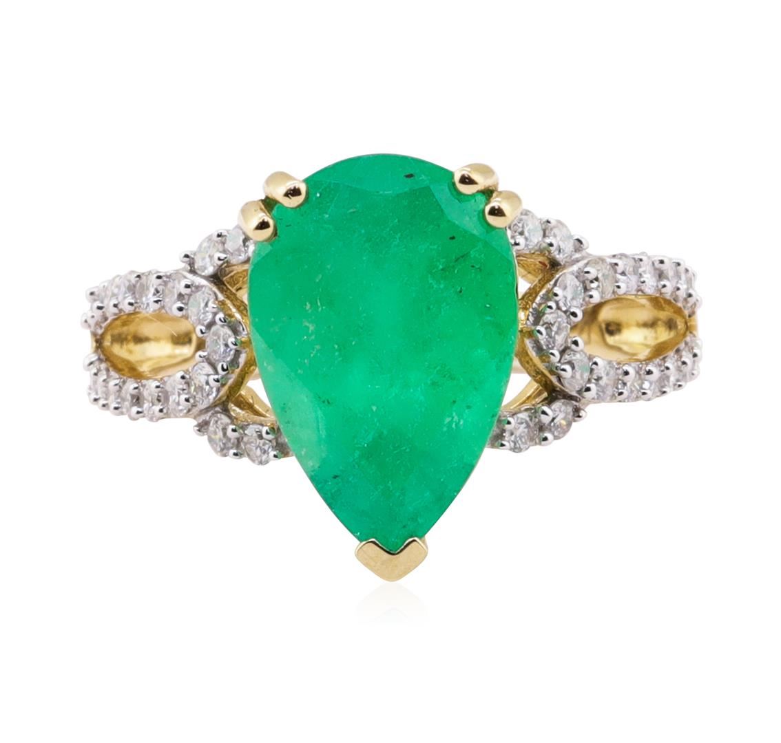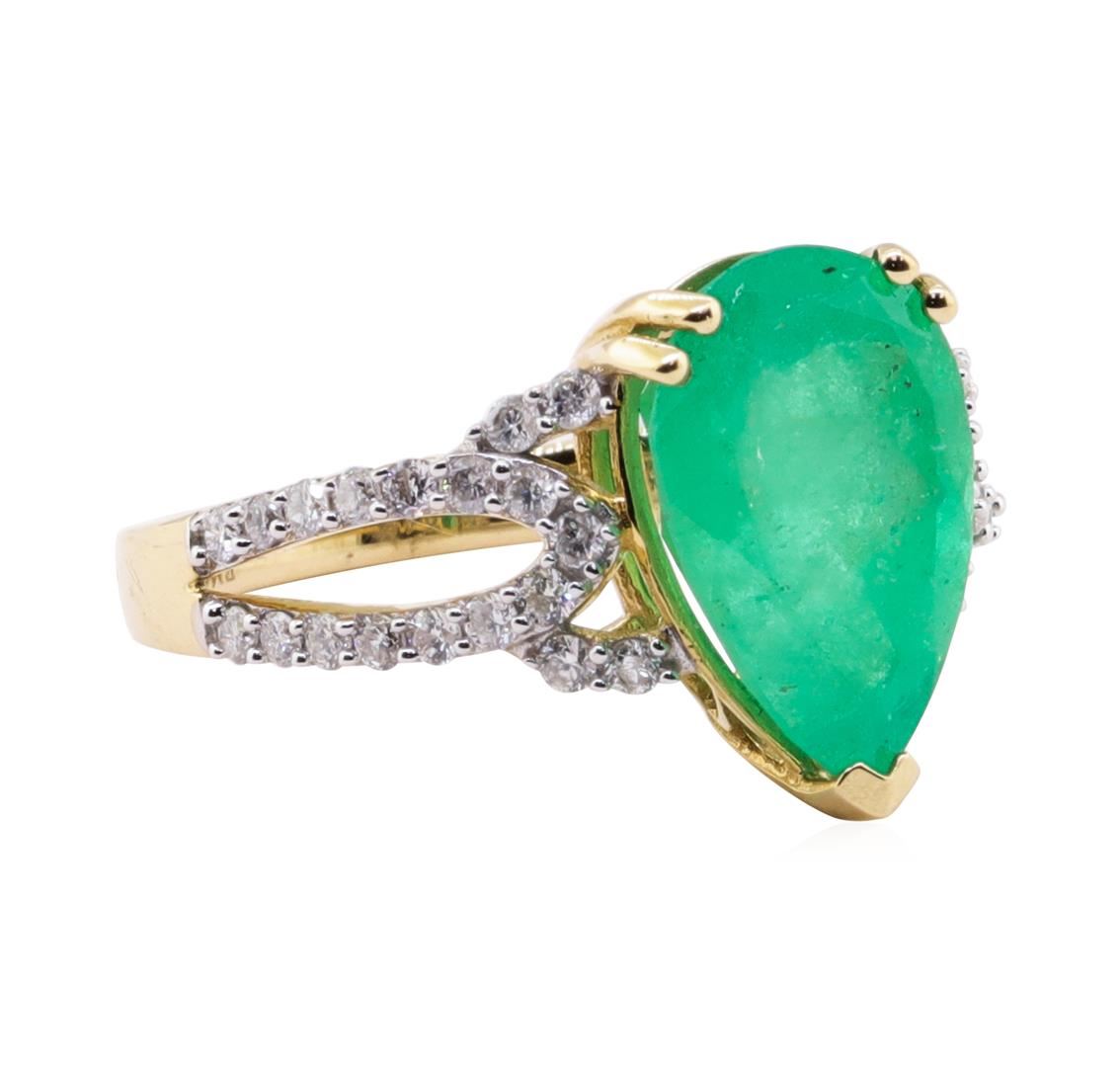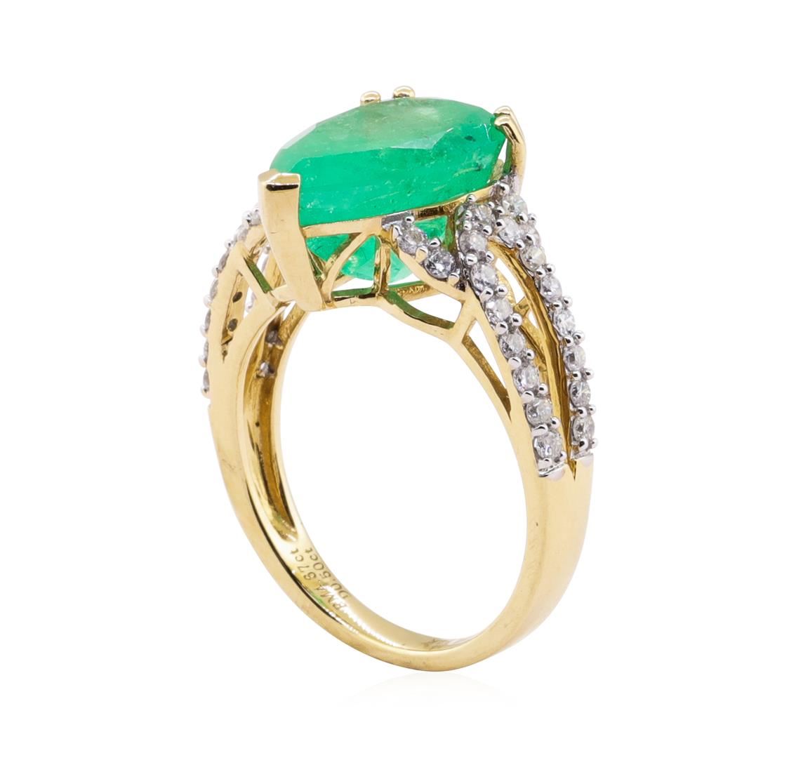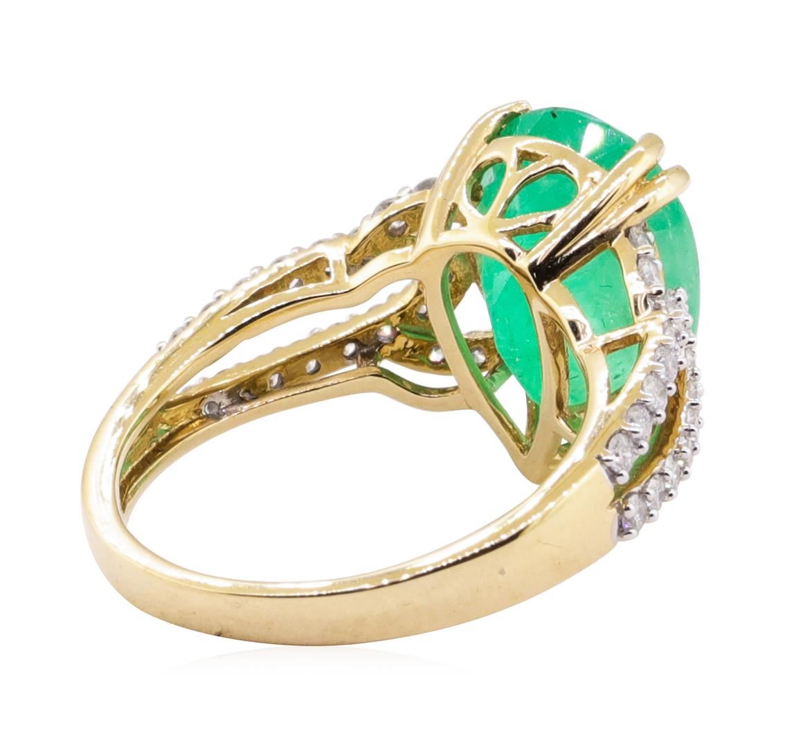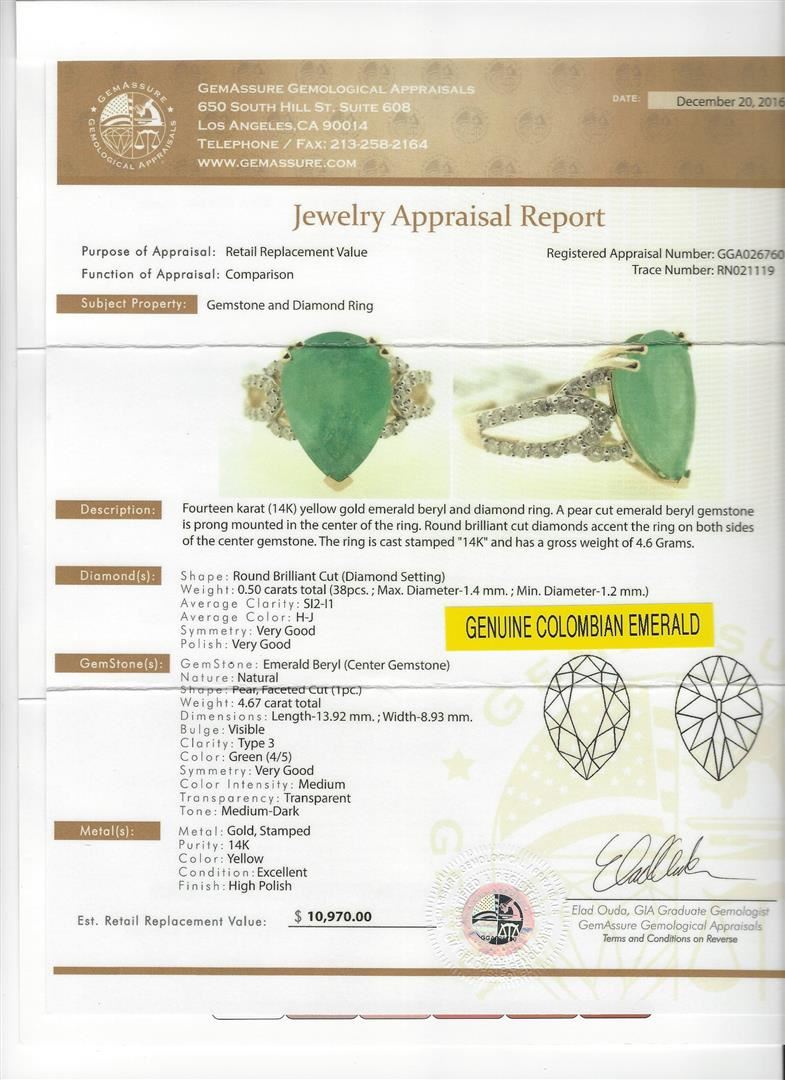 One 4.67ct Emerald and Diamond Ring - 14KT Yellow Gold. GGA certified. See Appraisal for more details. GGA Appraised.