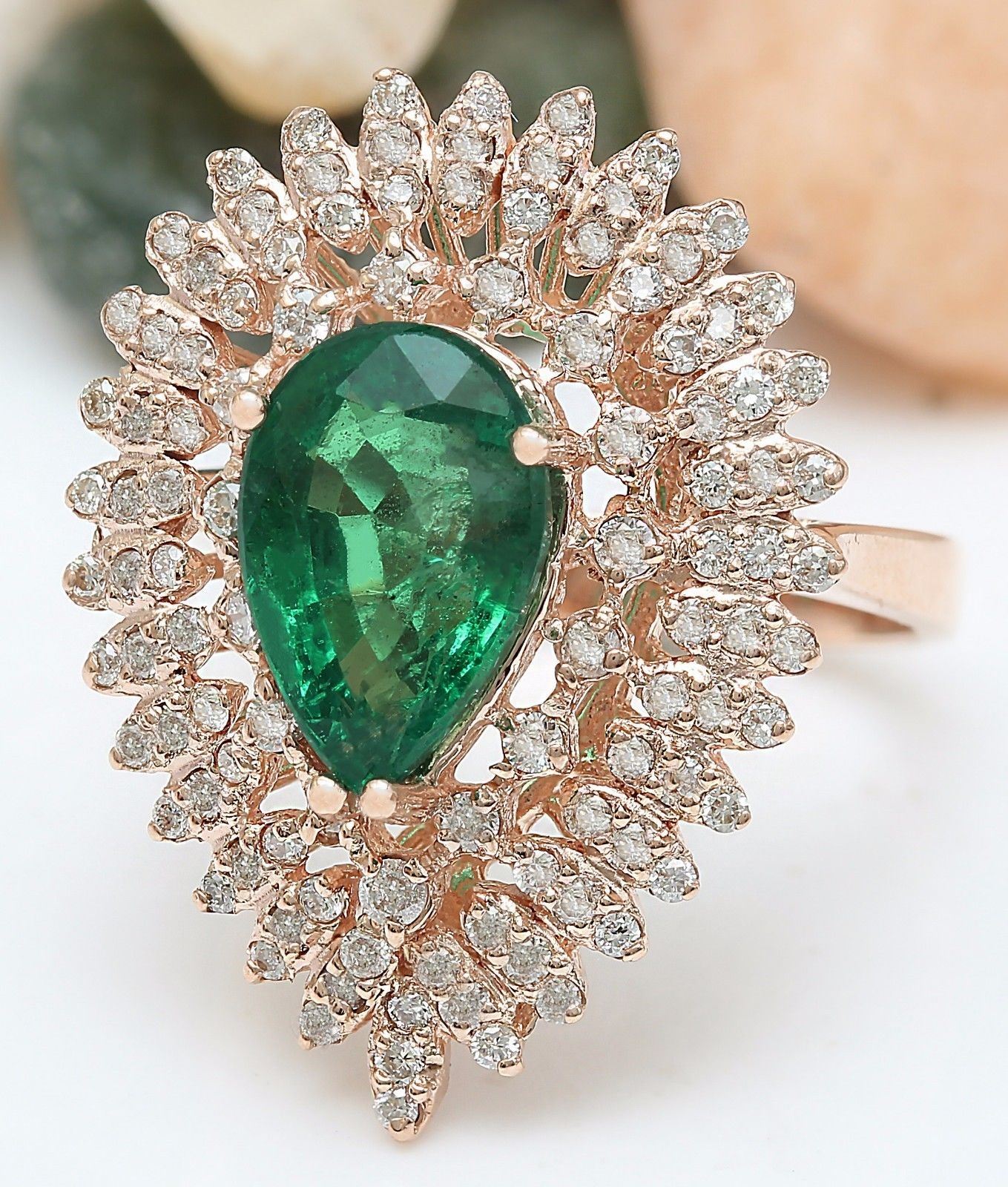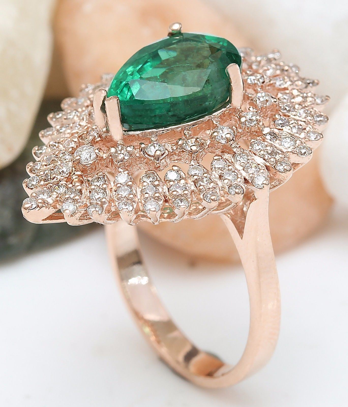 4.68 Carat Natural Emerald 18K Solid Rose Gold Diamond Ring