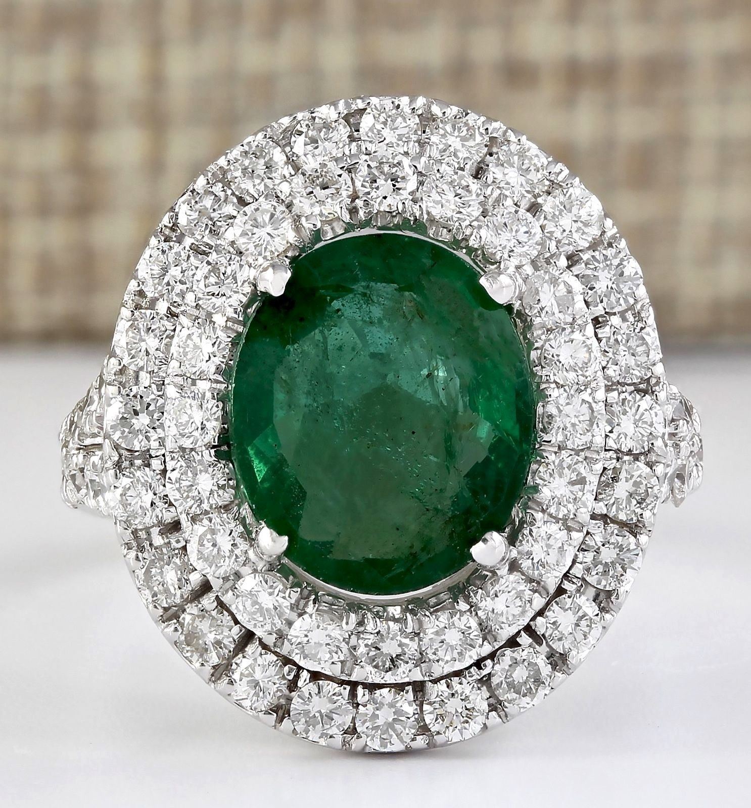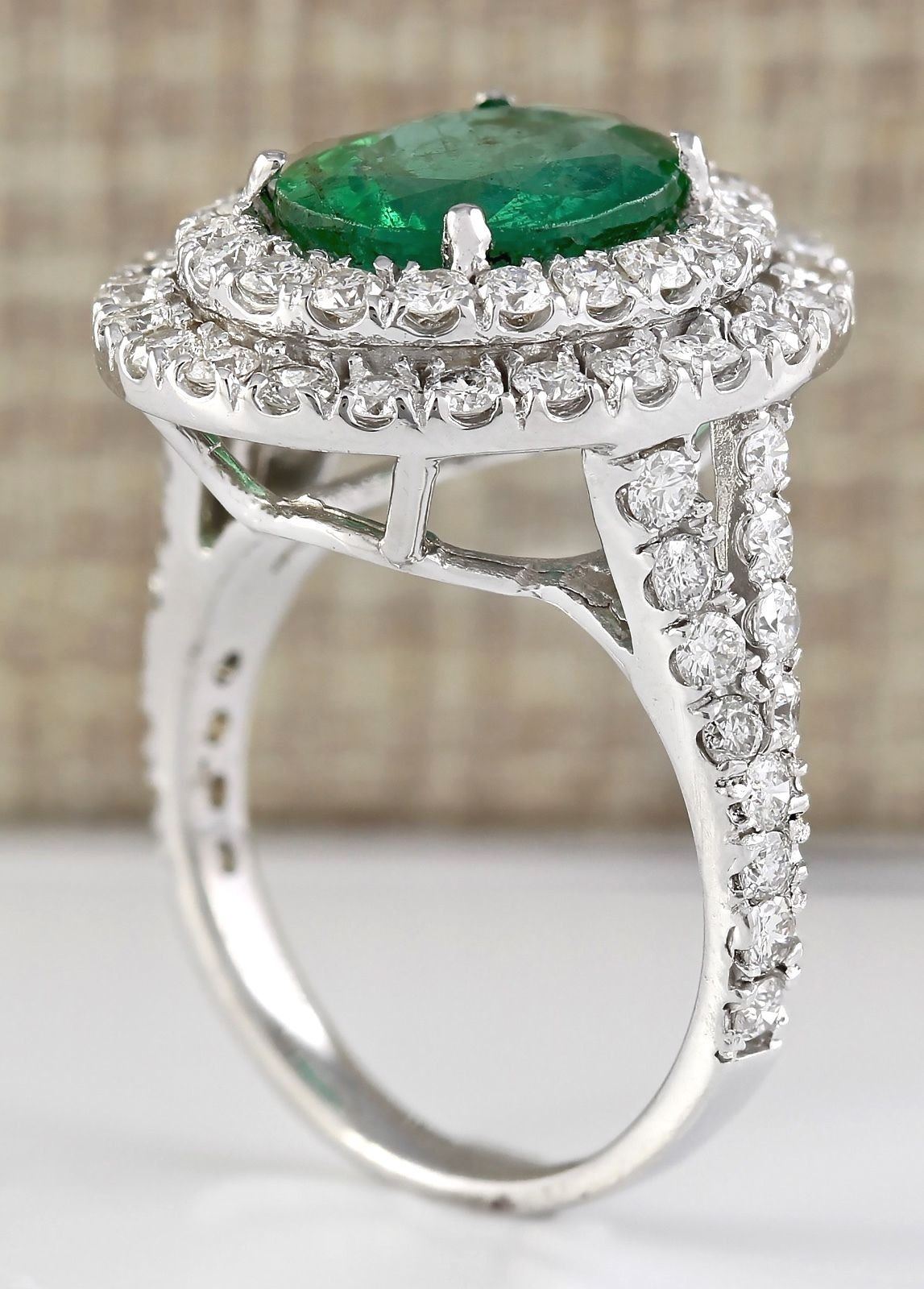 4.69 CTW Natural Emerald And Diamond Ring In 14k White Gold