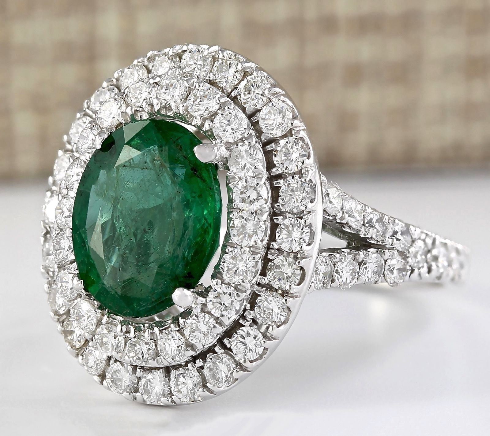 4.69 CTW Natural Emerald And Diamond Ring In 14k White Gold