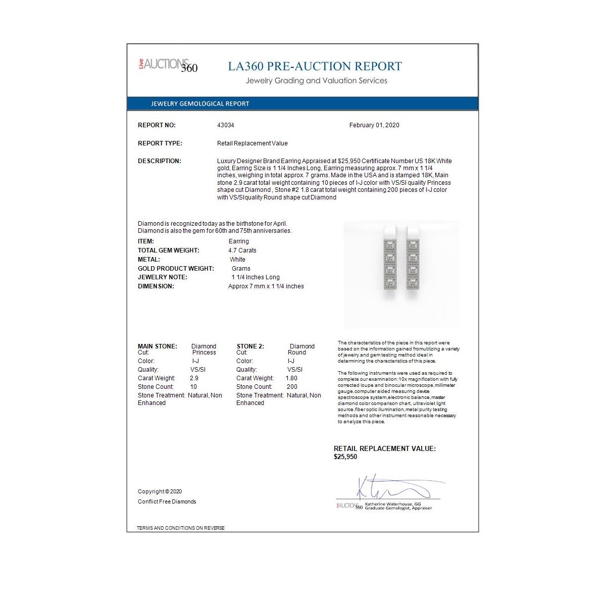 REF-393G4W - SKU: 43034 ---- 4.7 ctw Princess Cut Diamond Micro Pave Earrings 18K White Gold