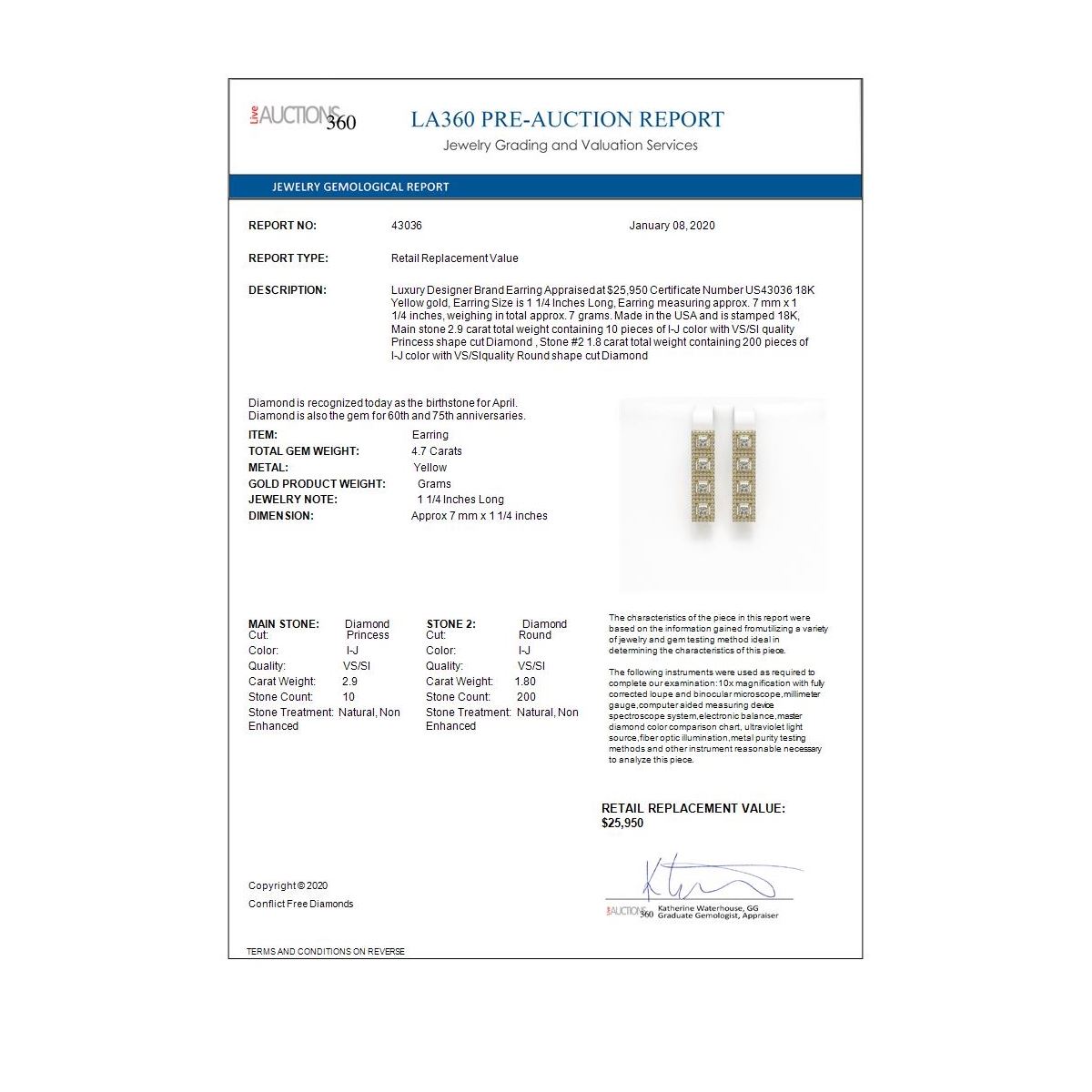 REF-393K4Y - SKU: 43036 ---- 4.7 ctw Princess Cut Diamond Micro Pave Earrings 18K Yellow Gold