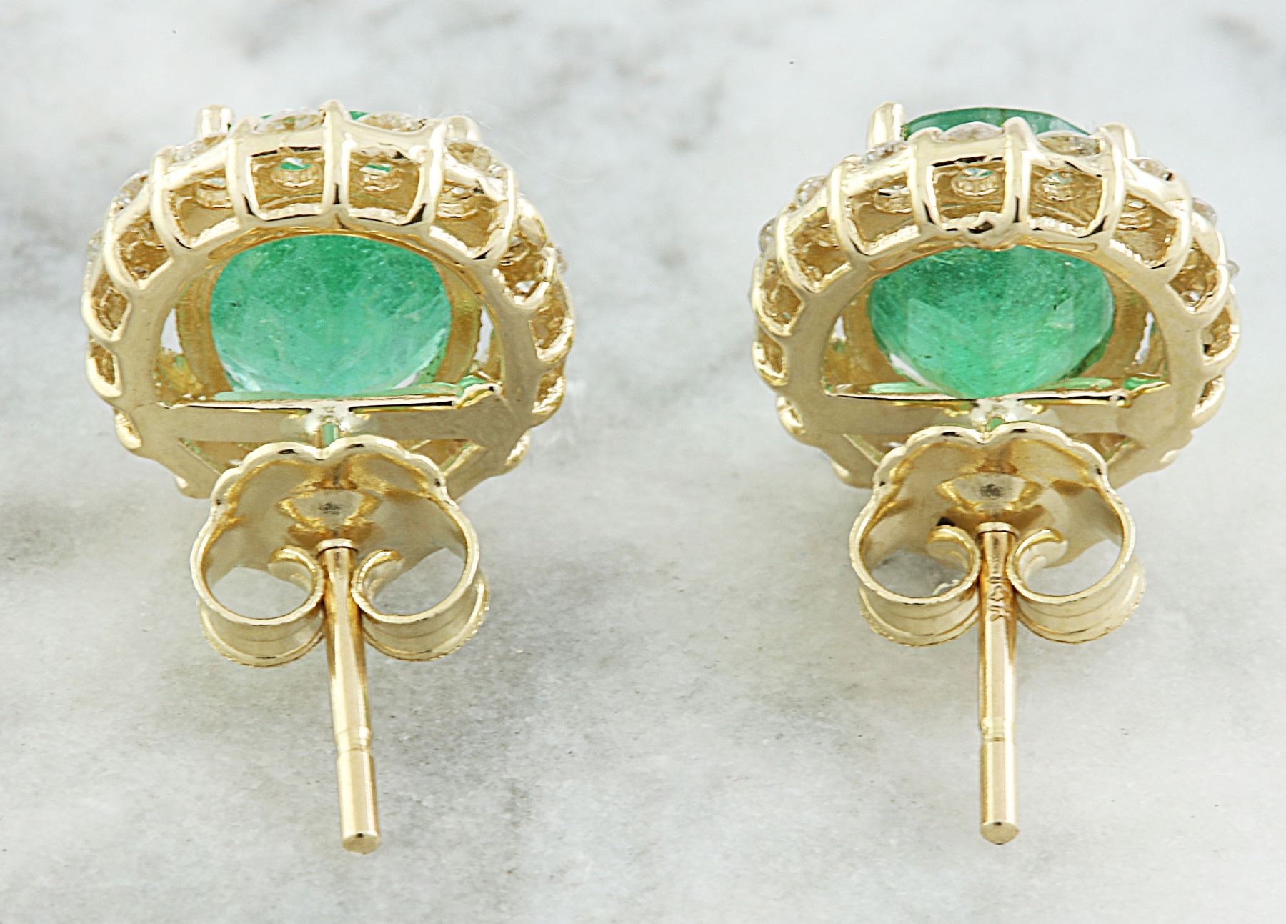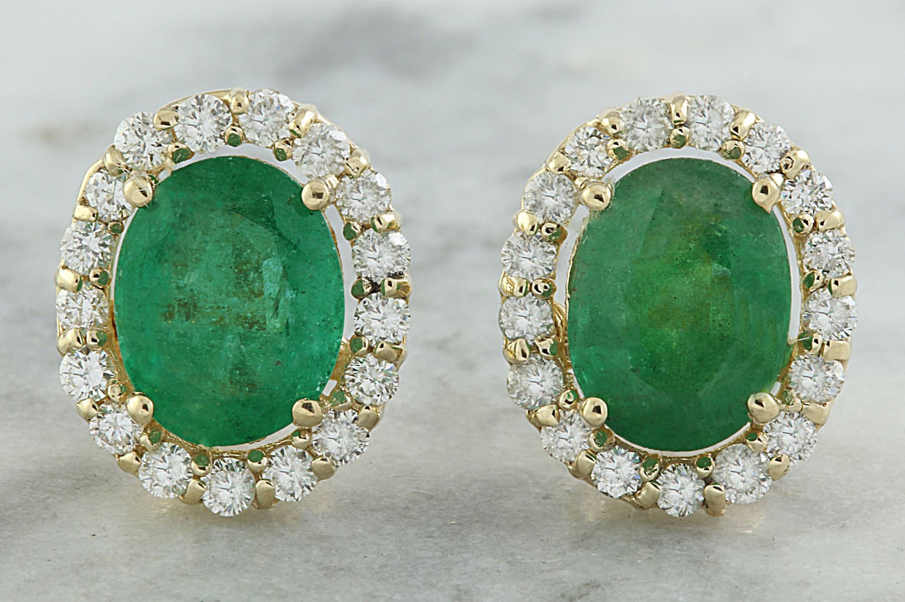 4.70 CTW Emerald 14K Yellow Gold Diamond Earrings