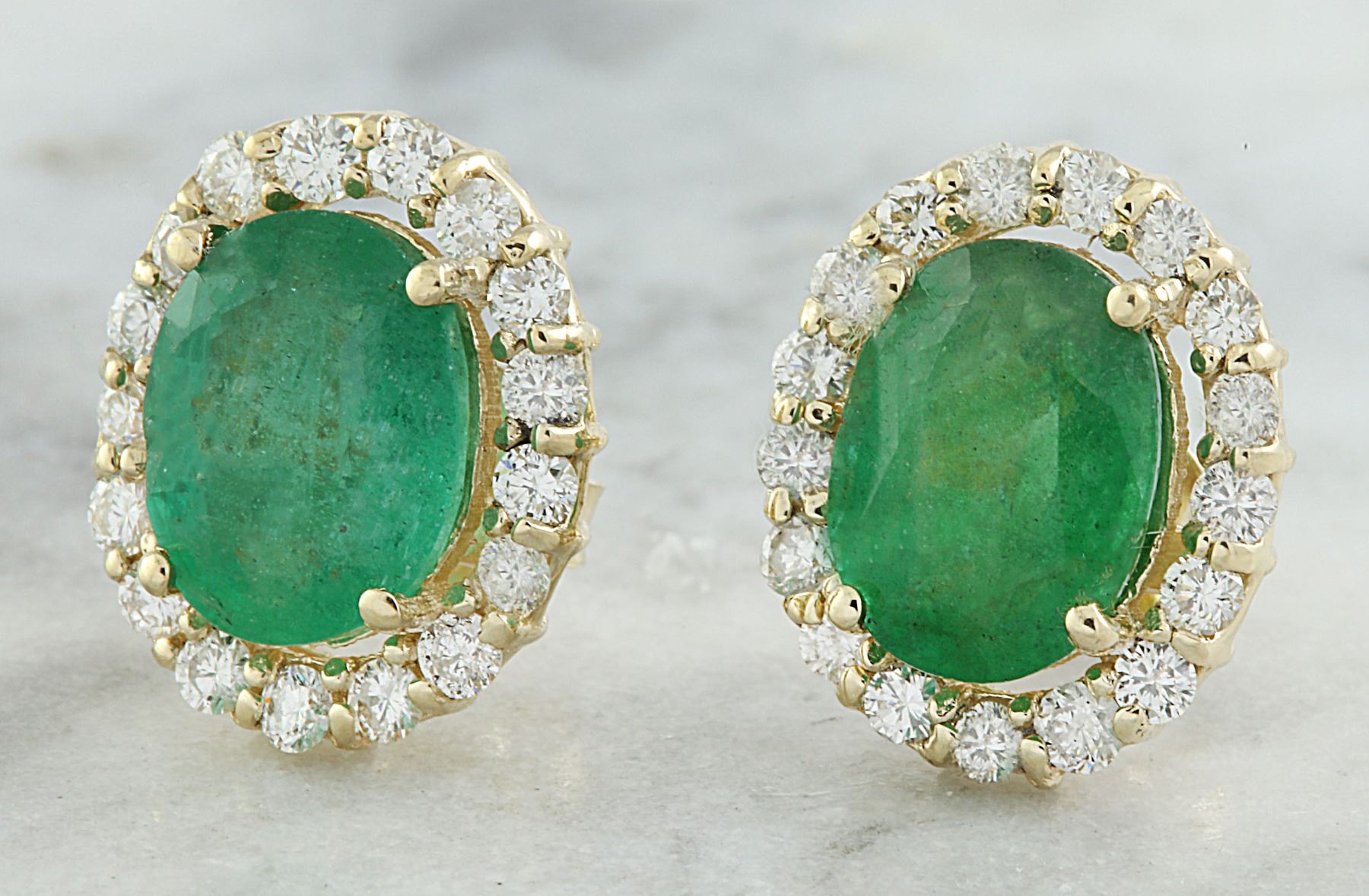4.70 CTW Emerald 18K Yellow Gold Diamond Earrings
