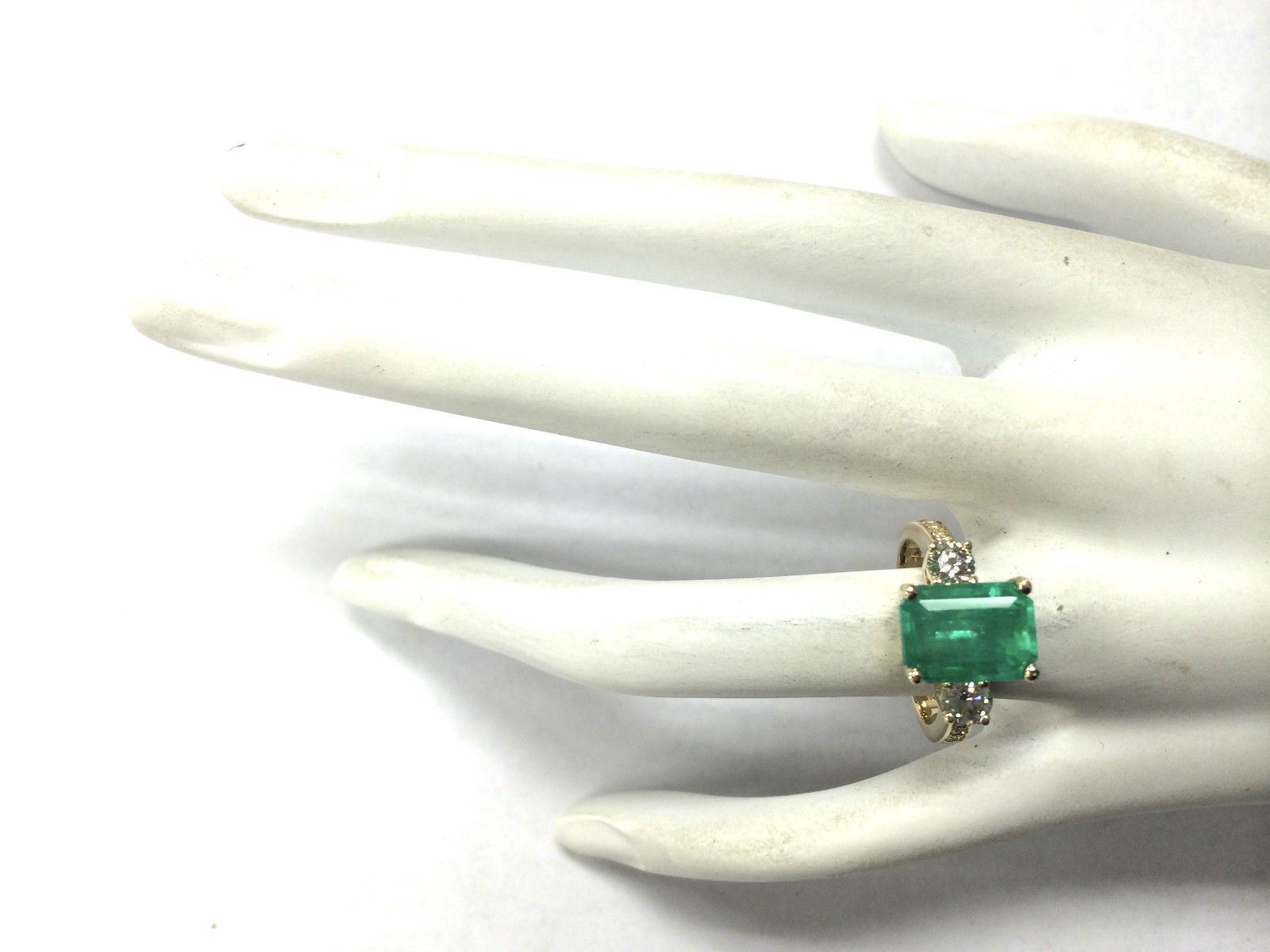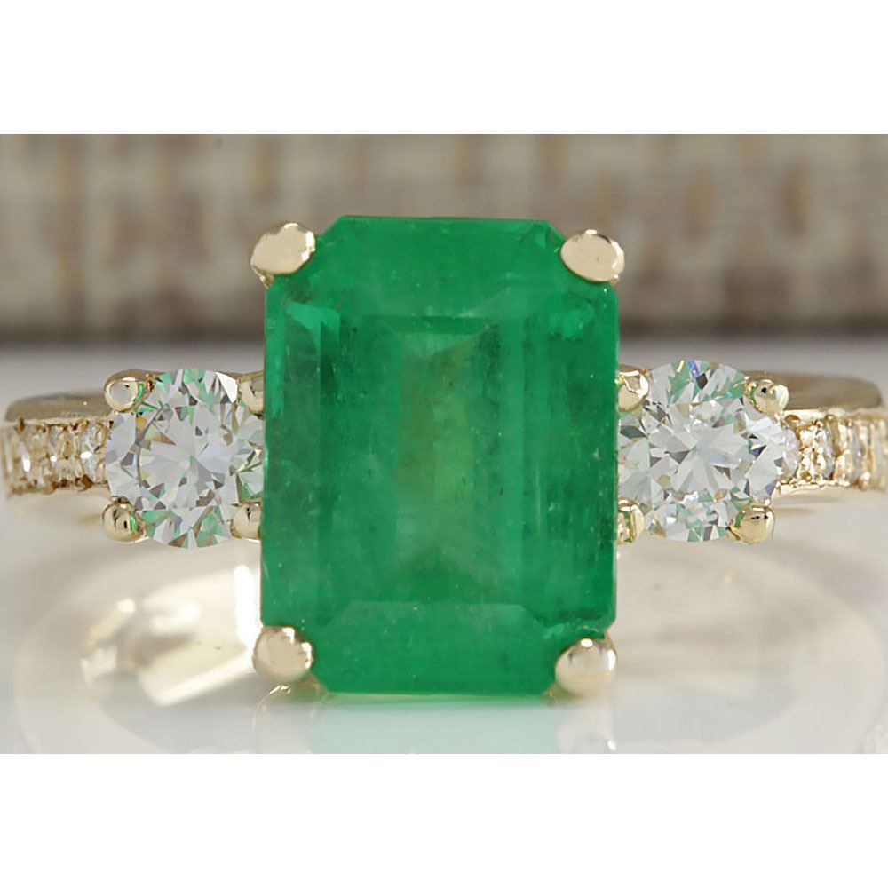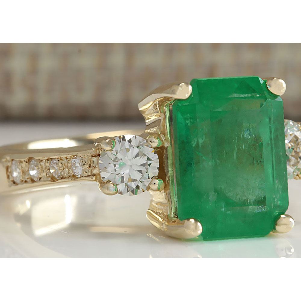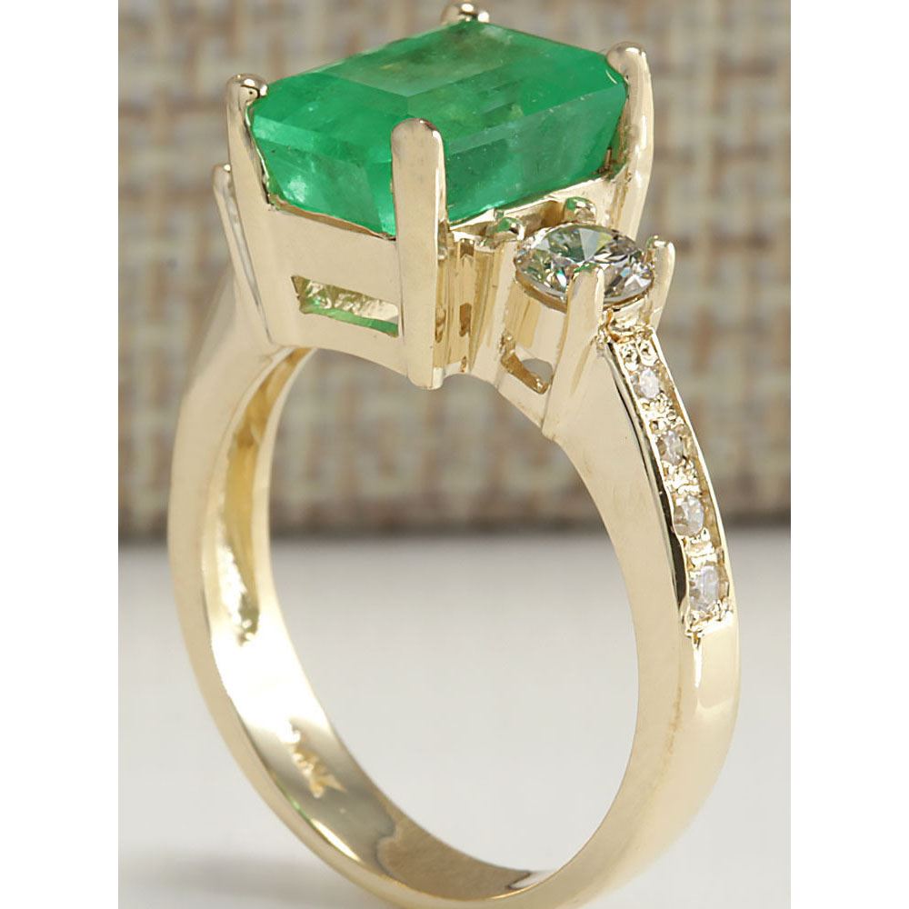 4.70 CTW Natural Colombian Emerald And Diamond Ring 14K Solid Yellow Gold