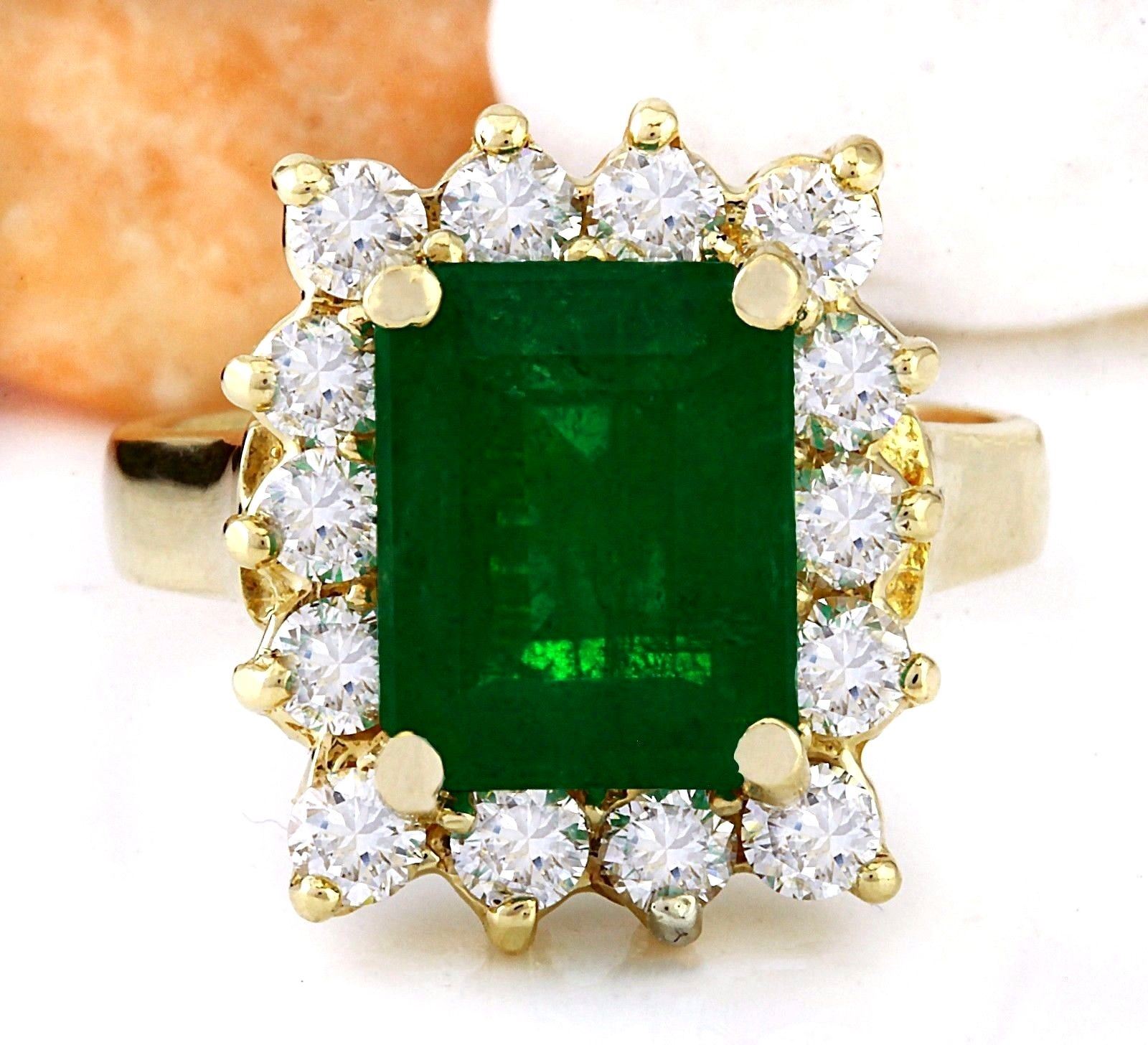 4.70 Carat Natural Emerald 18K Solid Yellow Gold Diamond Ring