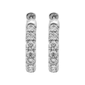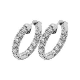 These Natural Diamond Hoop Earrings are mounted in 14K White Gold. With a total of 4.70 carats of White Full Brilliant Cut Round natural diamonds. Beautifully crafted, these diamond earrings feature round diamonds set throughout each hoop earring design of 14k white gold. TCW:4.70 ct. G-H color VS-1 clarity (24 stones) No Treatments. 100% Natural. All lots are shipped by FEDEX / UPS with insurance and direct adult signature is required. Any questions please ask.
