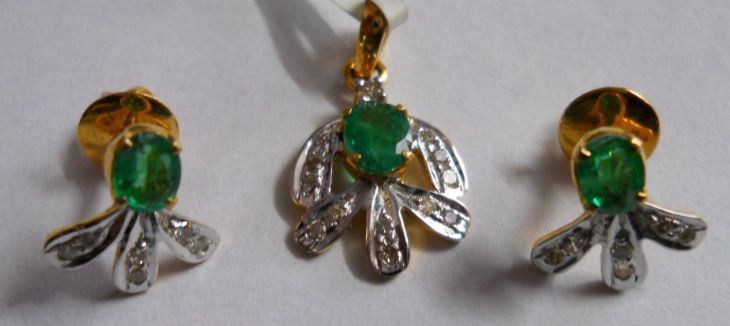 Earring and Pendant Set of total weight 4.715g in 18kt 4.429g Gold ,Diamond:0.37 Ctw and Emerald:1.06 Ctw