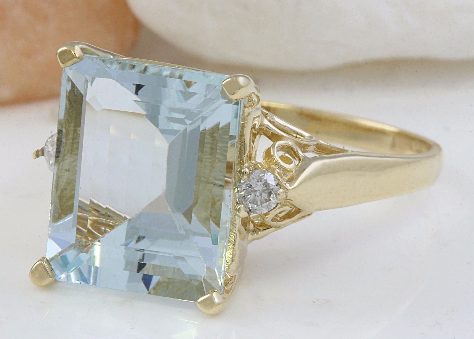4.72 Carat Natural Aquamarine 14K Solid Yellow Gold Diamond Ring