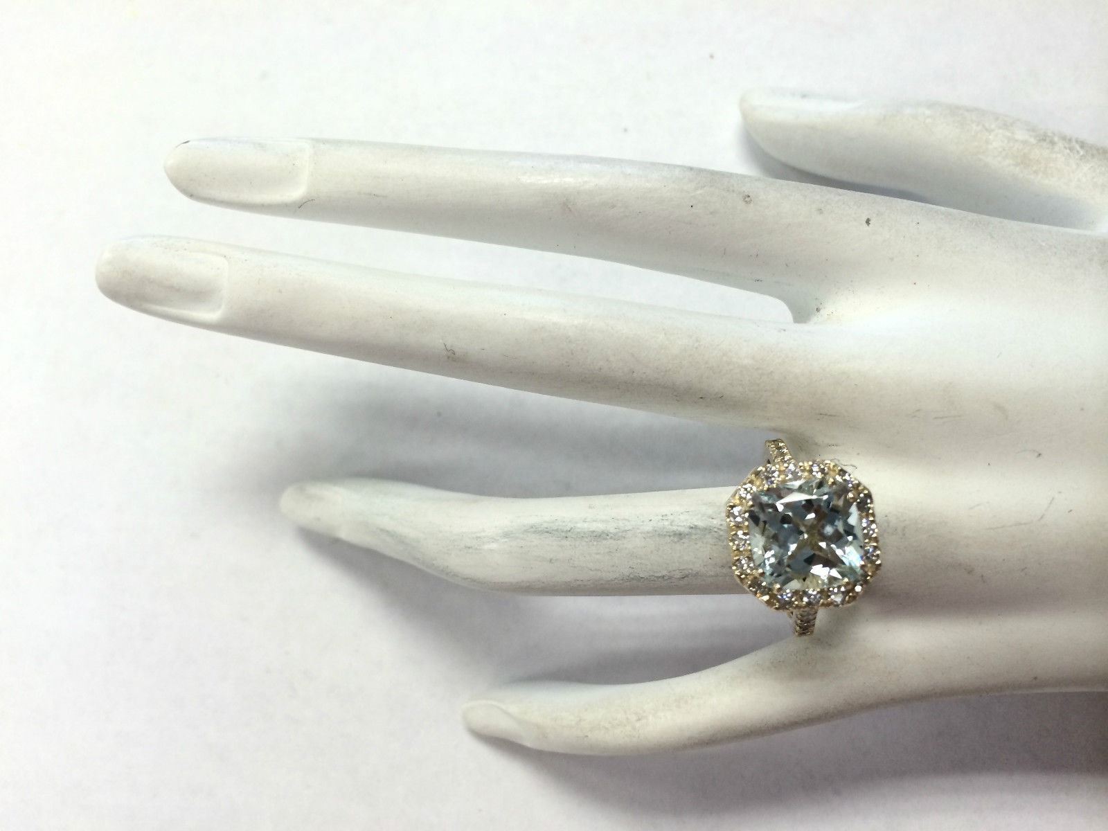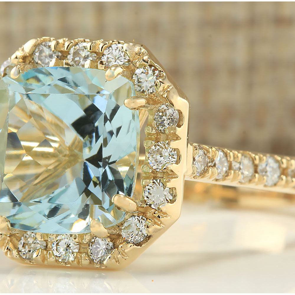 4.72 CTW Natural Aquamarine And Diamond Ring In 14k Yellow Gold