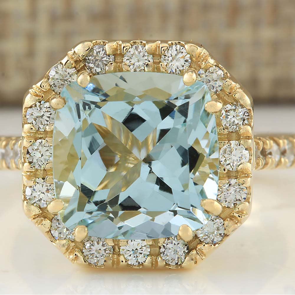 4.72 CTW Natural Aquamarine And Diamond Ring In 18K Yellow Gold