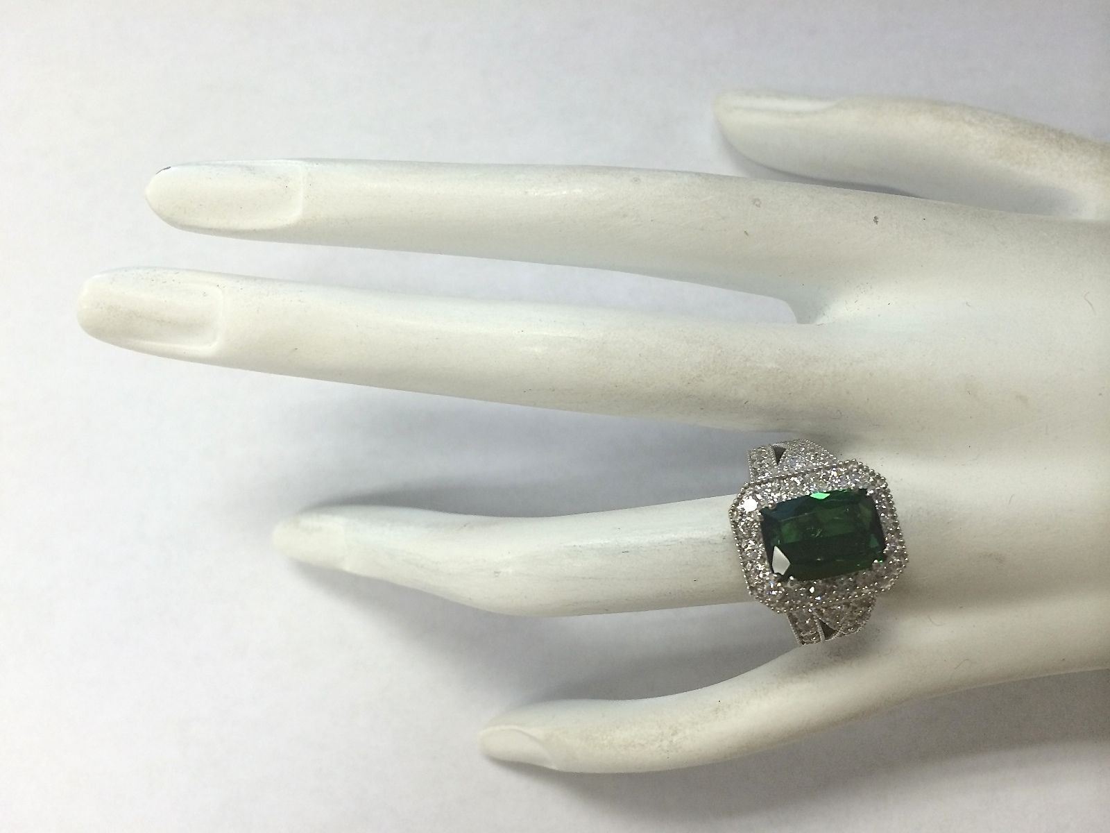 4.72 CTW Natural Green Tourmaline And Diamond Ring 18K Solid White Gold