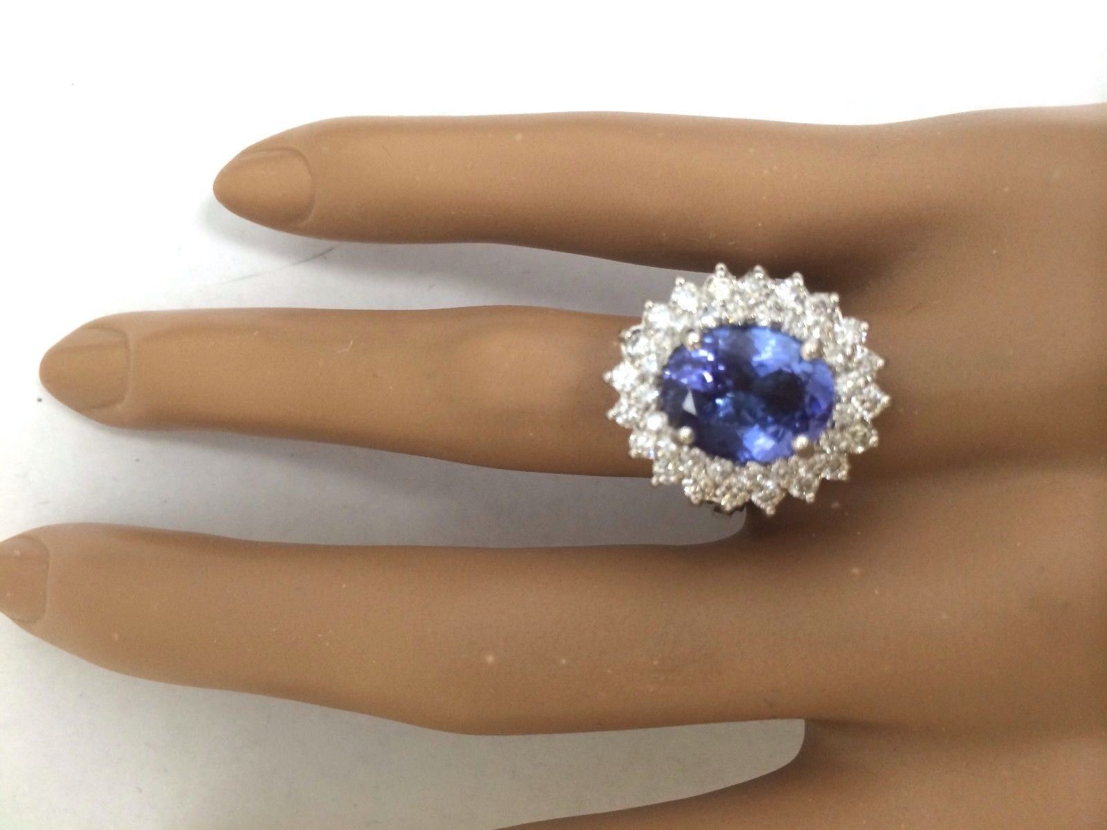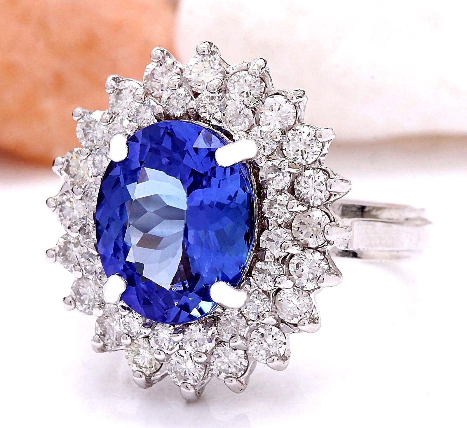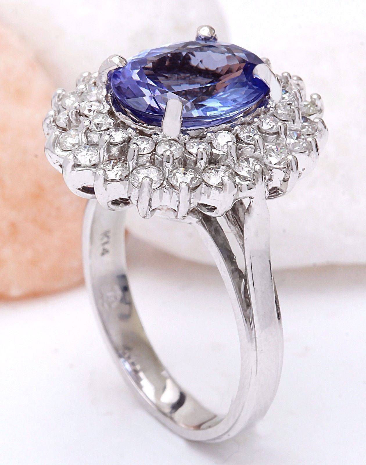 4.72 Carat Natural Tanzanite 18K Solid White Gold Diamond Ring