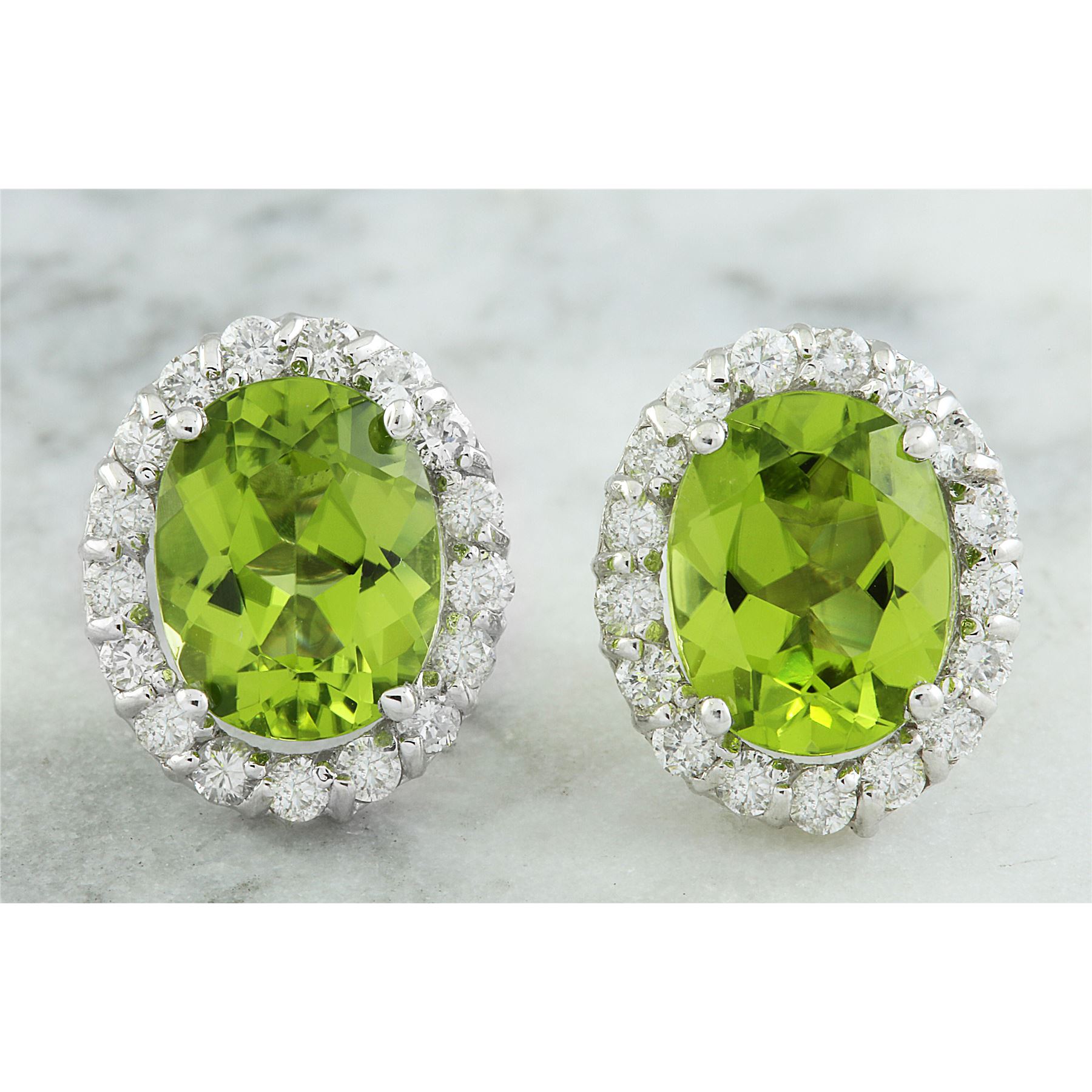 4.72 CTW Peridot 14K White Gold Diamond Earrings