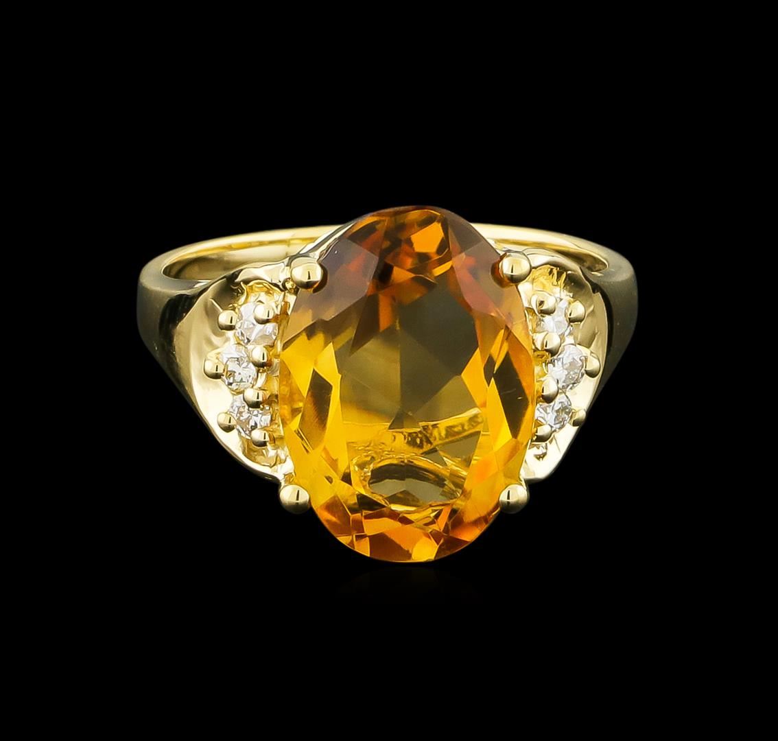 One Ring featuring: 14KT Yellow Gold weighing 4.16 grams containing one Citrine center stone with a total weight of 4.72ct and Diamonds with a total weight of 0.15ct.