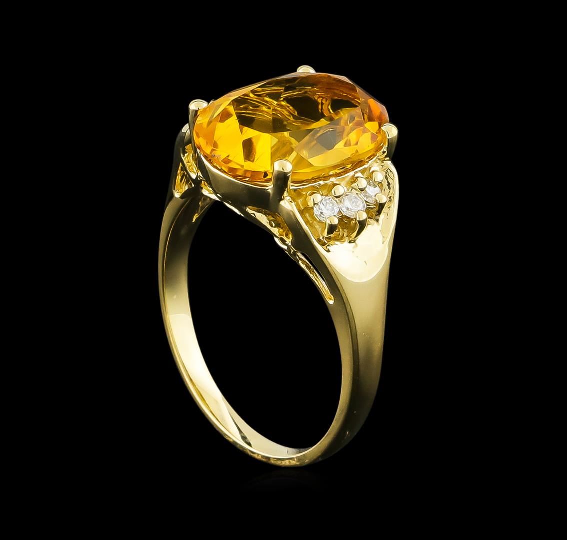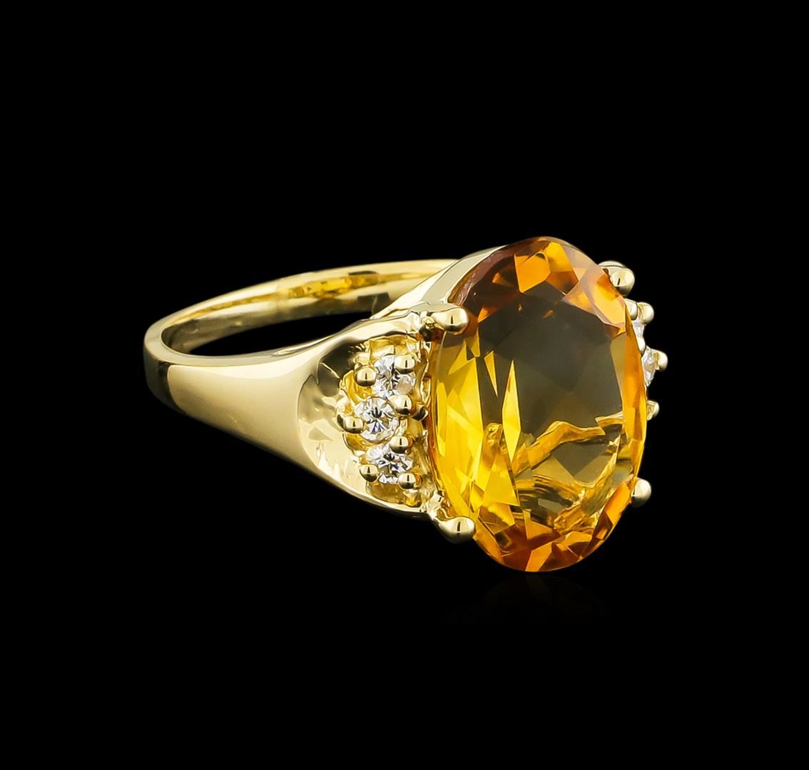 One Ring featuring: 14KT Yellow Gold weighing 4.16 grams containing one Citrine center stone with a total weight of 4.72ct and Diamonds with a total weight of 0.15ct.
