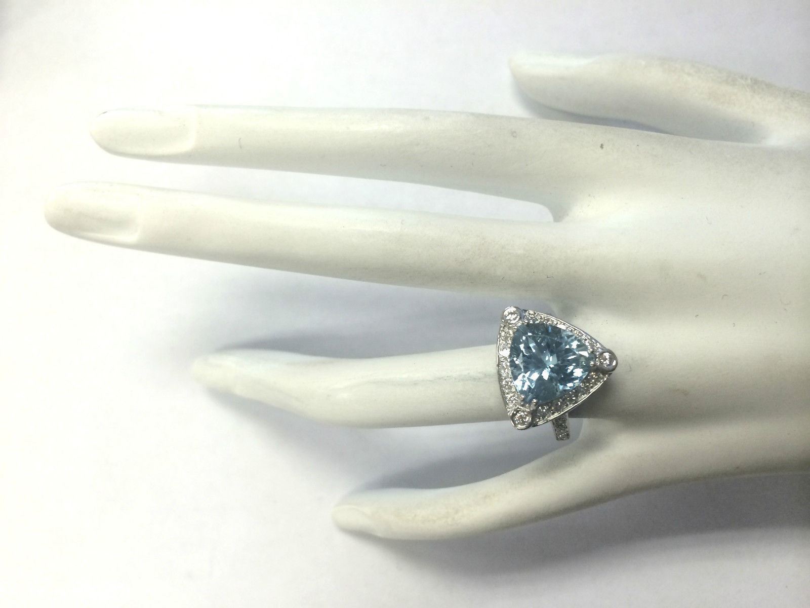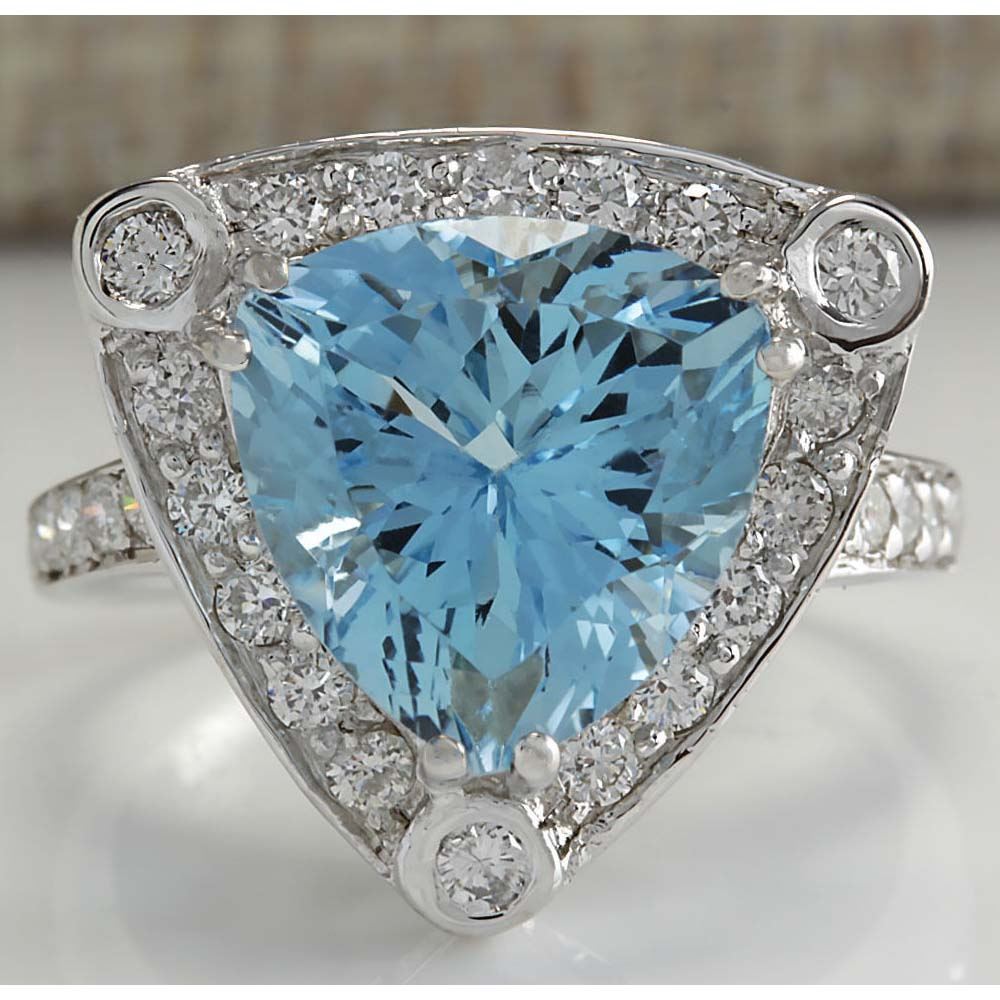 4.73 CTW Natural Aquamarine And Diamond Ring In 18K Solid White Gold
