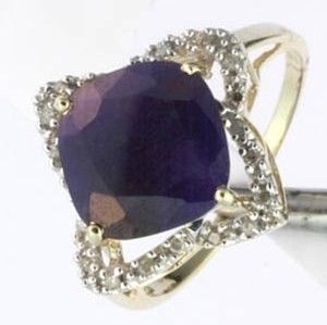 4.60 CT BLUE SAPPHIRE - FACETED CUSHION CUT WITH DIAMOND ACCENT POINTS - 10 KY GOLD