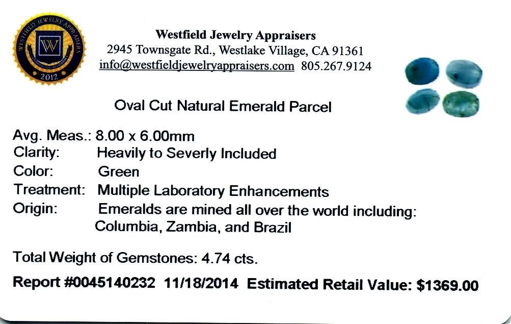 4.74cts. Oval Cut Natural Emerald Parcel Westfield Appraised at $1,369.00.