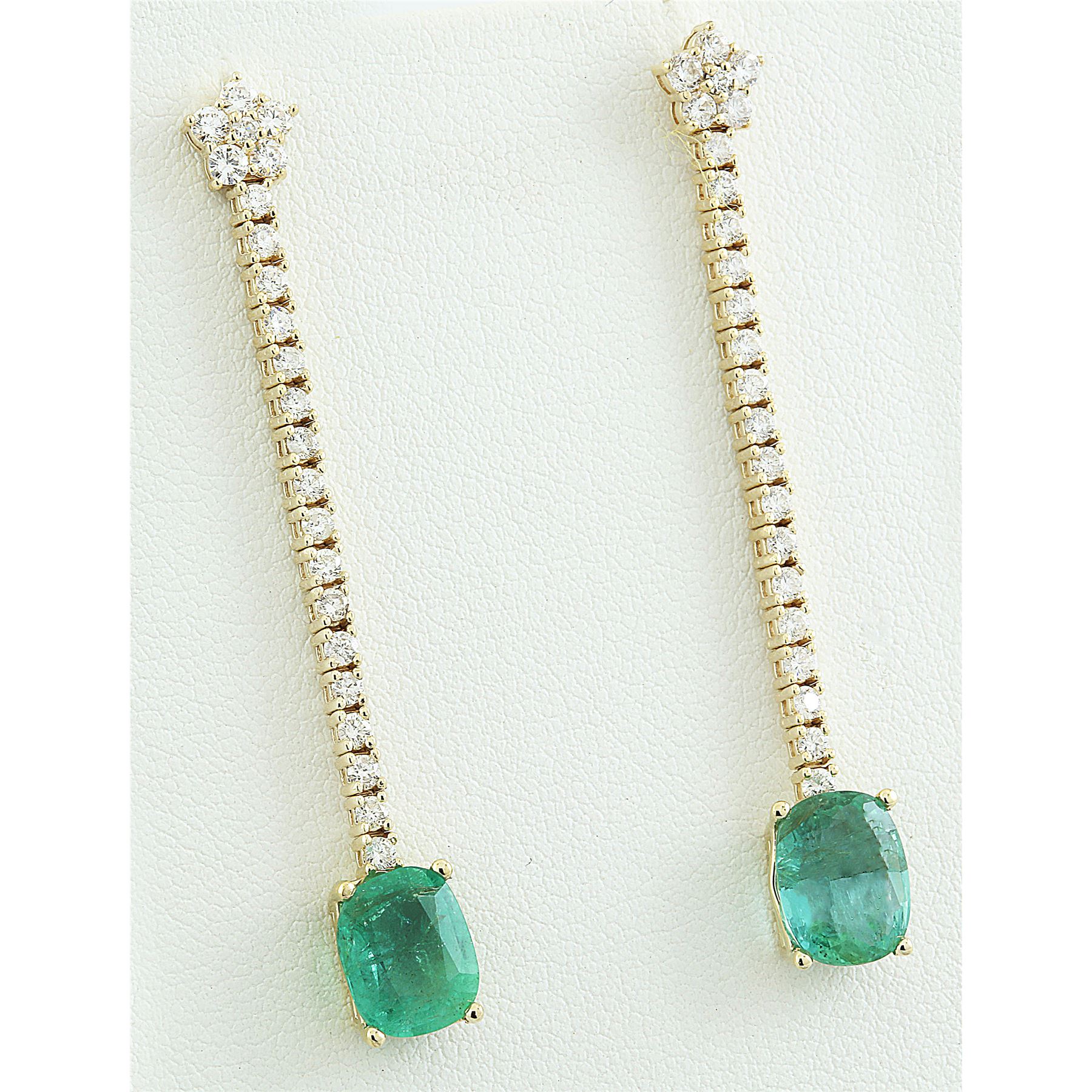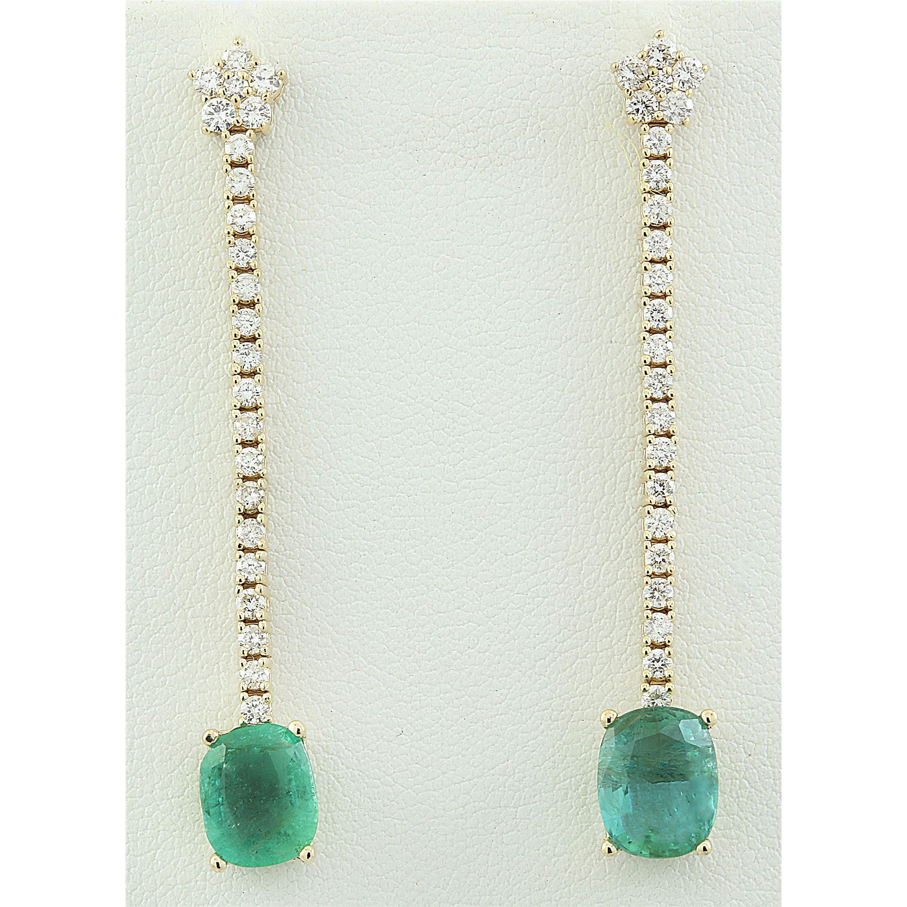 4.75 CTW Emerald 18K Yellow Gold Diamond Eaarings