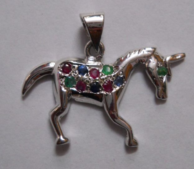 4.750g Horse Shape Pendant of Sapphire,Ruby and Emerald in Silver