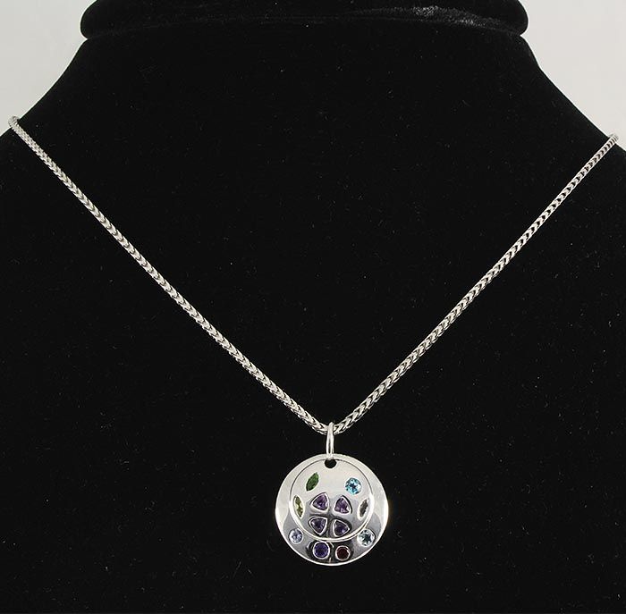 4.75gram Round Silver Pendant w/ Multi Color Stone **|**|** 1.00 Inches Long Round Design Pendant with Multi-color Semi Precious Gemstone ; MSRP: $100
