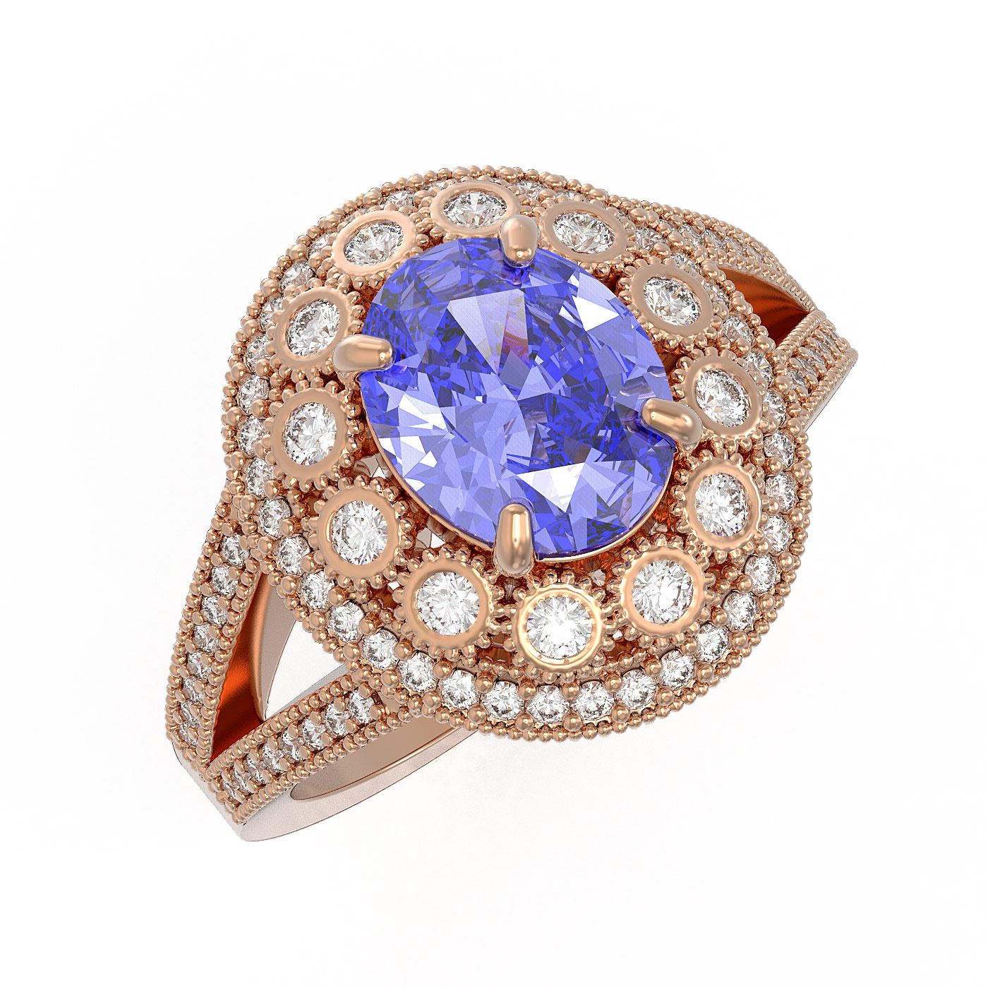 SKU: 43584 ---- 4.76 ctw Certified Tanzanite & Diamond Victorian Ring 14K Rose Gold