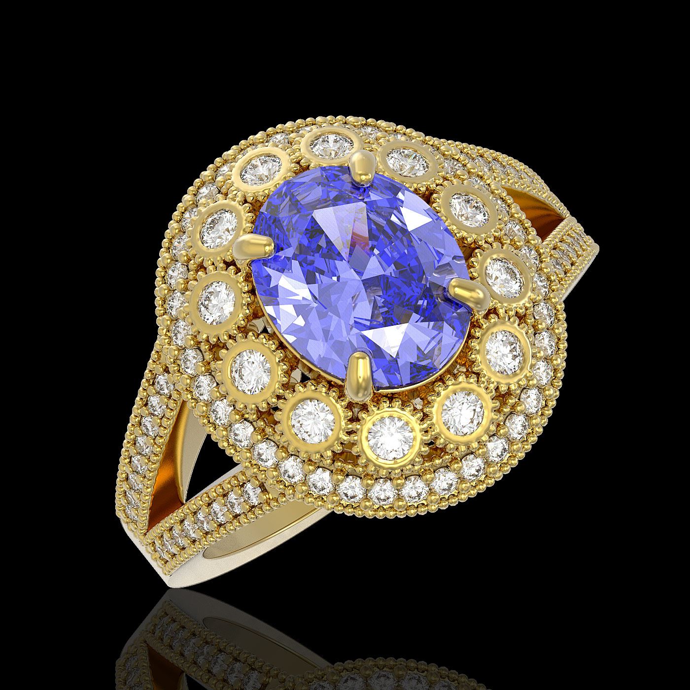 REF-178W5H - SKU: 43585 ---- 4.76 ctw Certified Tanzanite & Diamond Victorian Ring 14K Yellow Gold