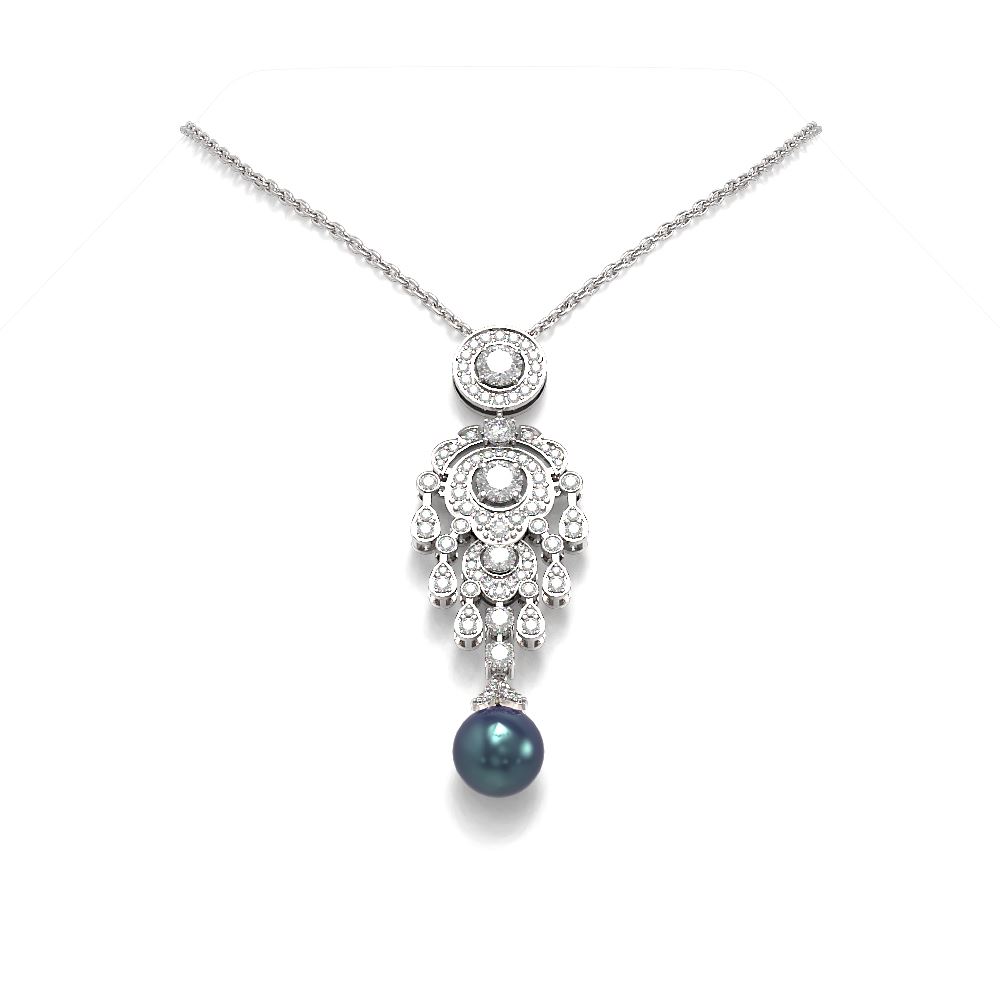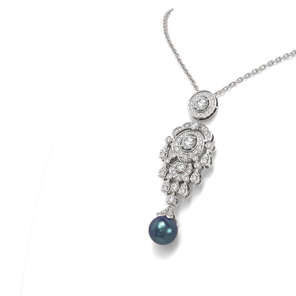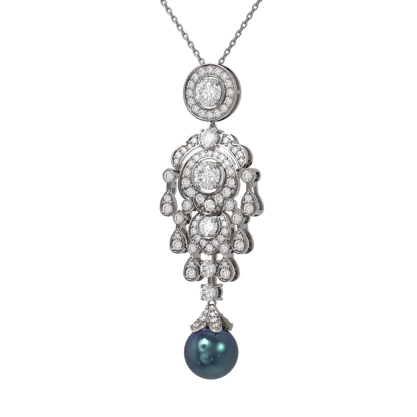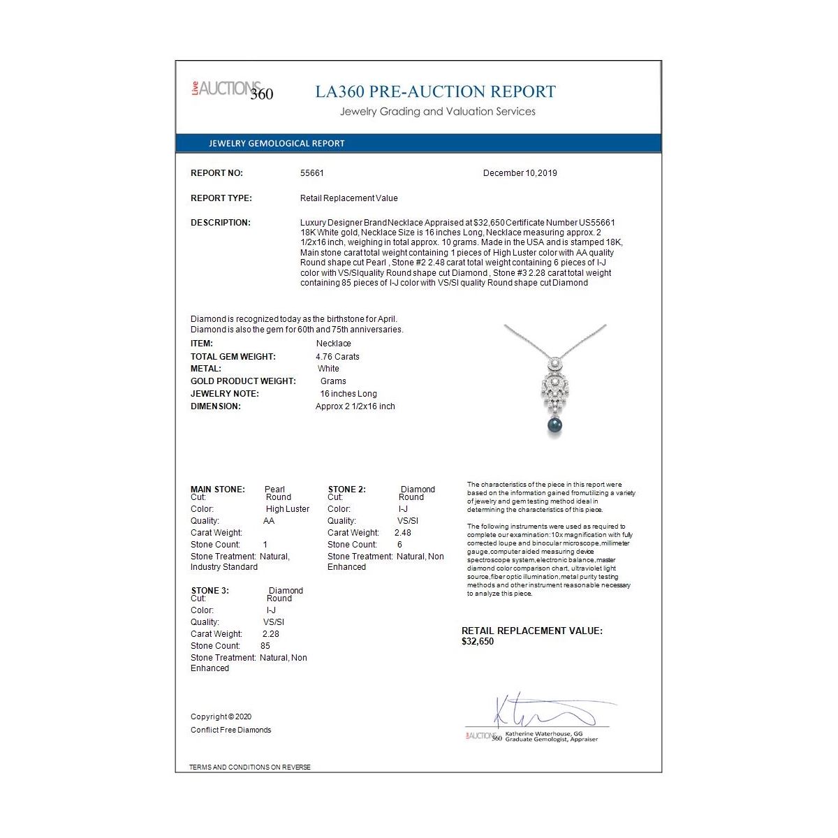 REF-659F3M - SKU: 55661 ---- 4.76 ctw Diamond & Pearl Necklace 18K White Gold