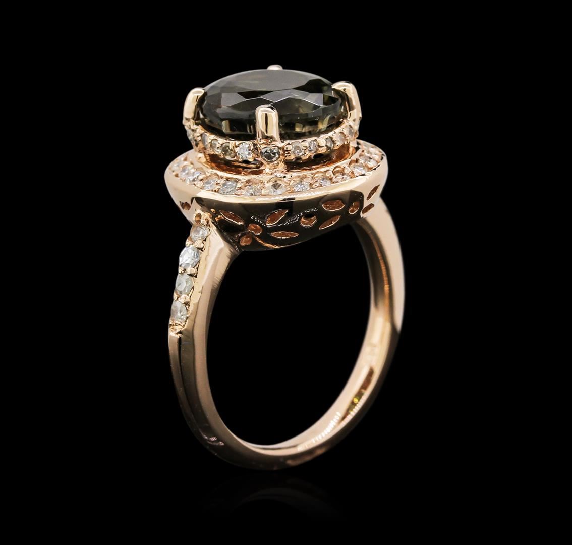 One ring featuring: 14KT rose gold weighing 7.85 grams containing one tourmaline with a total weight of 4.76ct and diamonds with a total weight of 0.63ct.