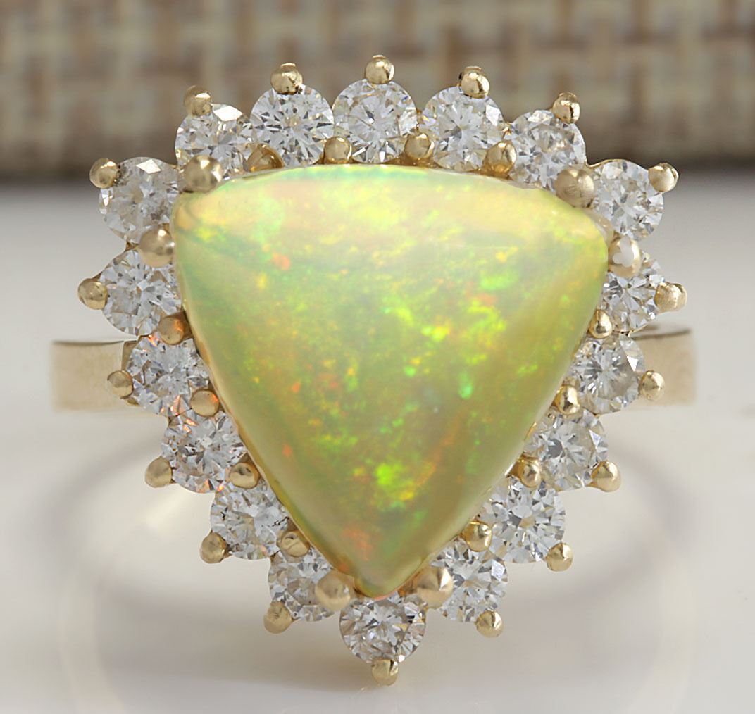 4.77 CTW Natural Opal And Diamond Ring In 14K Solid Yellow Gold