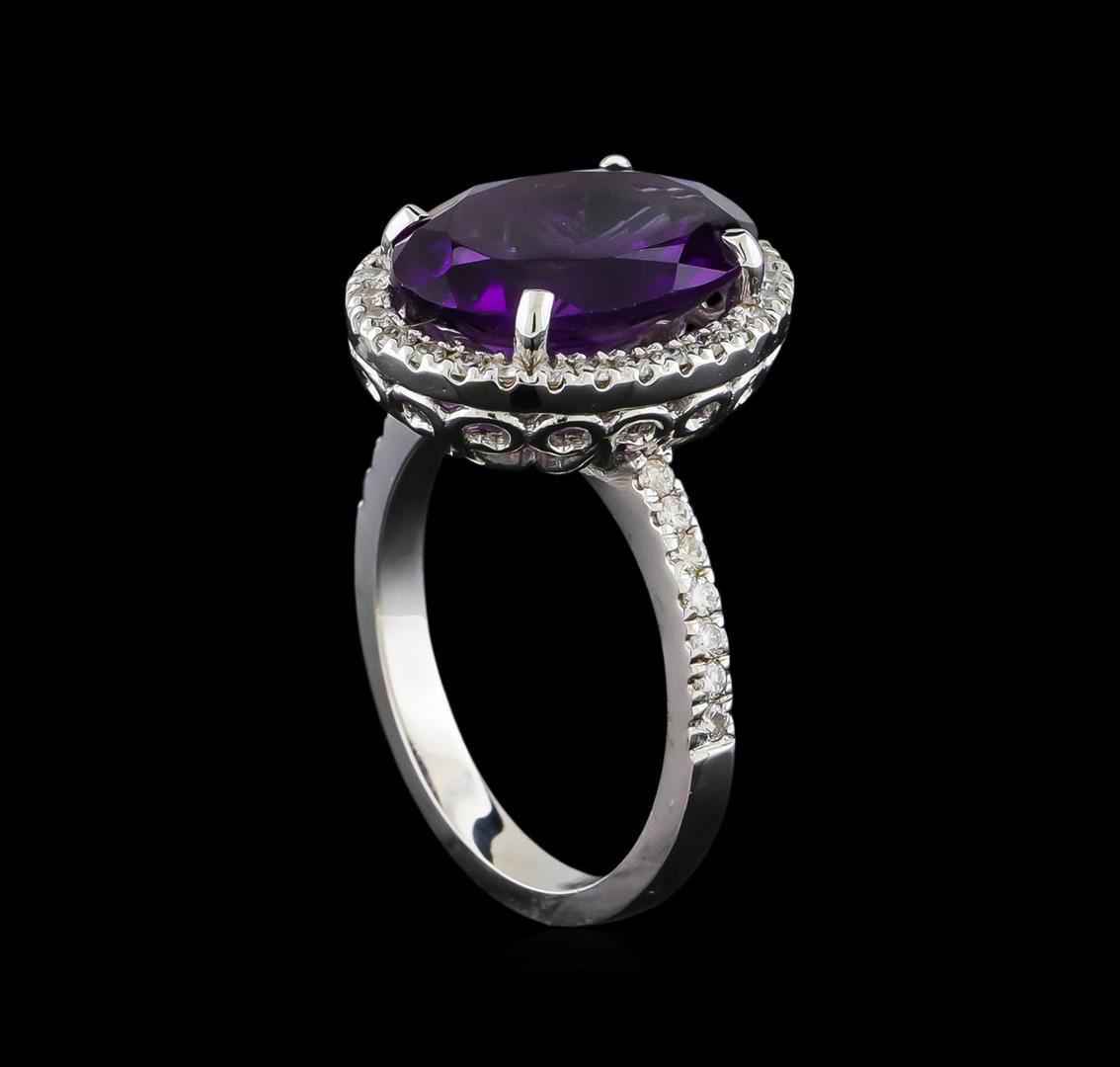 One Ring featuring: 14KT White Gold weighing 5 grams containing one Amethyst center stone with a total weight of 4.77ct and Diamonds with a total weight of 0.48ct.