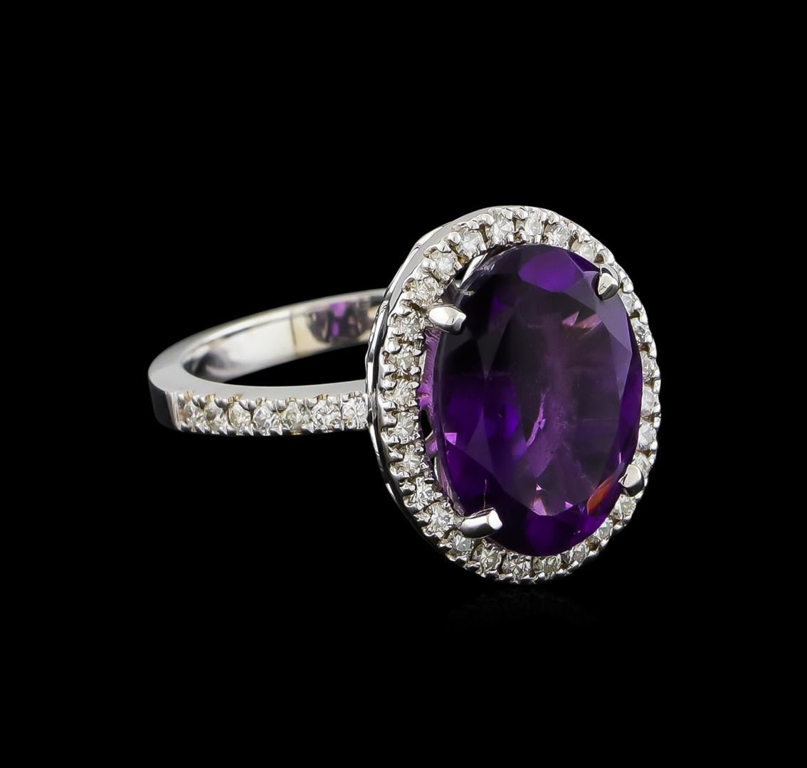 One Ring featuring: 14KT White Gold weighing 5 grams containing one Amethyst center stone with a total weight of 4.77ct and Diamonds with a total weight of 0.48ct.