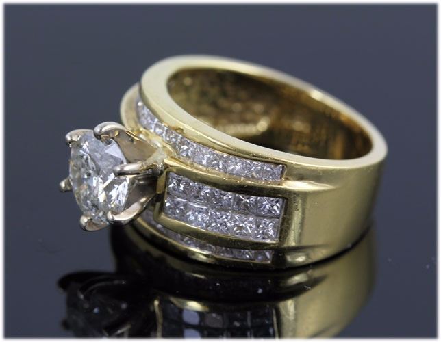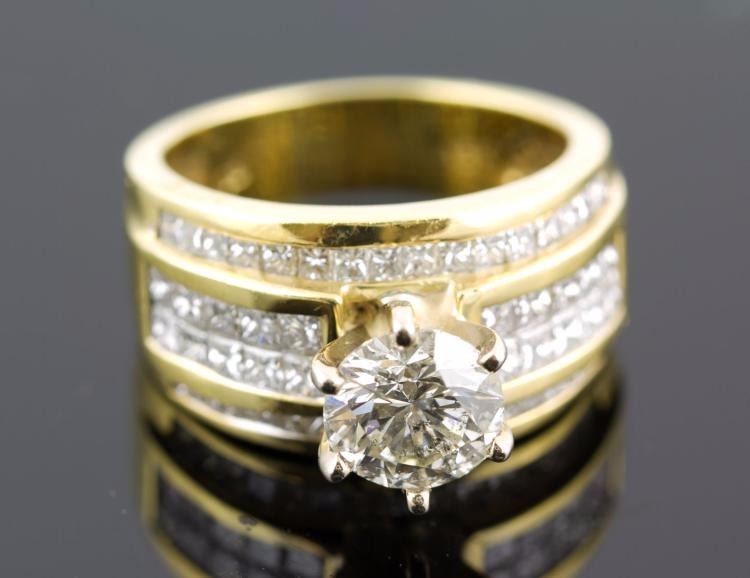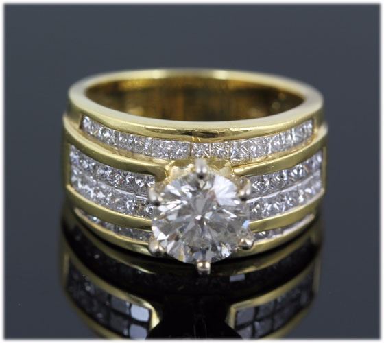 4.77 ctw Diamond Engagement Ring 18K Yellow Gold I-J, I1, 11.9 tgw|**Size:7