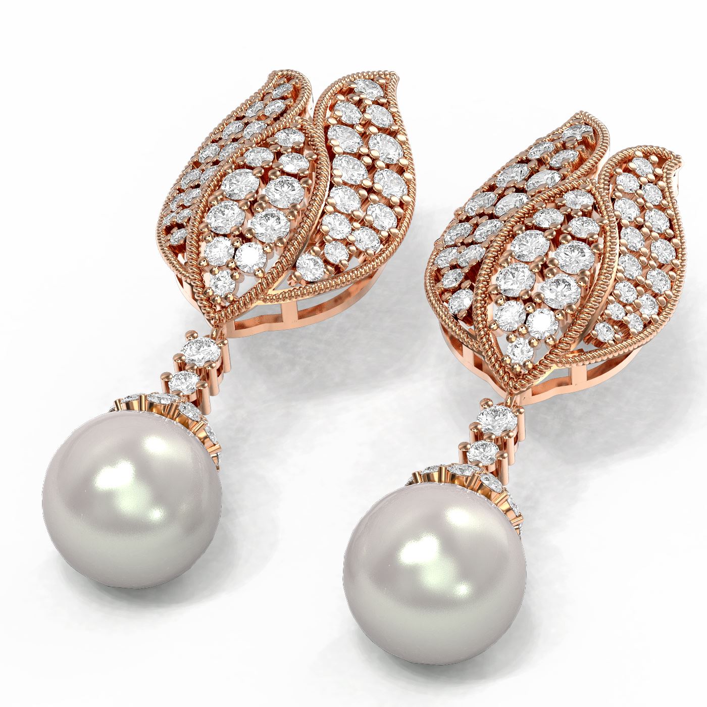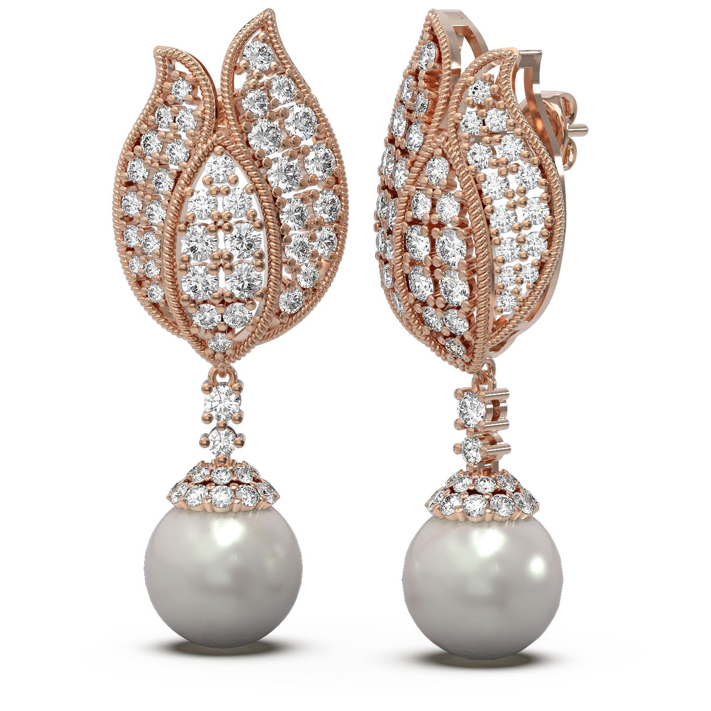 SKU: 59931 ---- 4.77 ctw Diamond & Pearl Earrings 18K Rose Gold