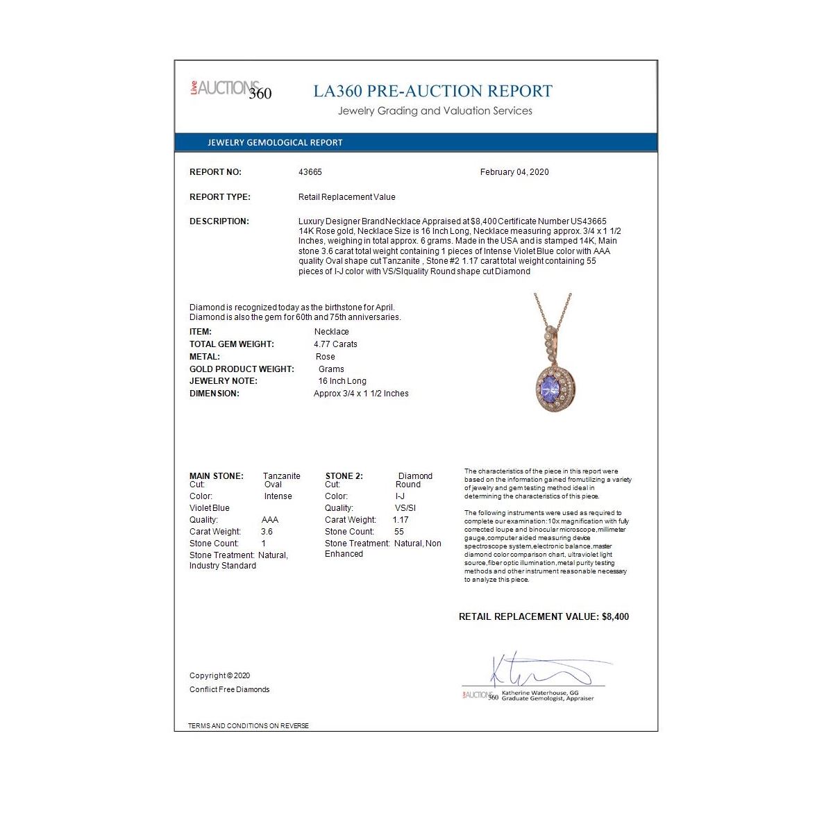 REF-169A8N - SKU: 43665 ---- 4.77 ctw Tanzanite & Diamond Victorian Necklace 14K Rose Gold