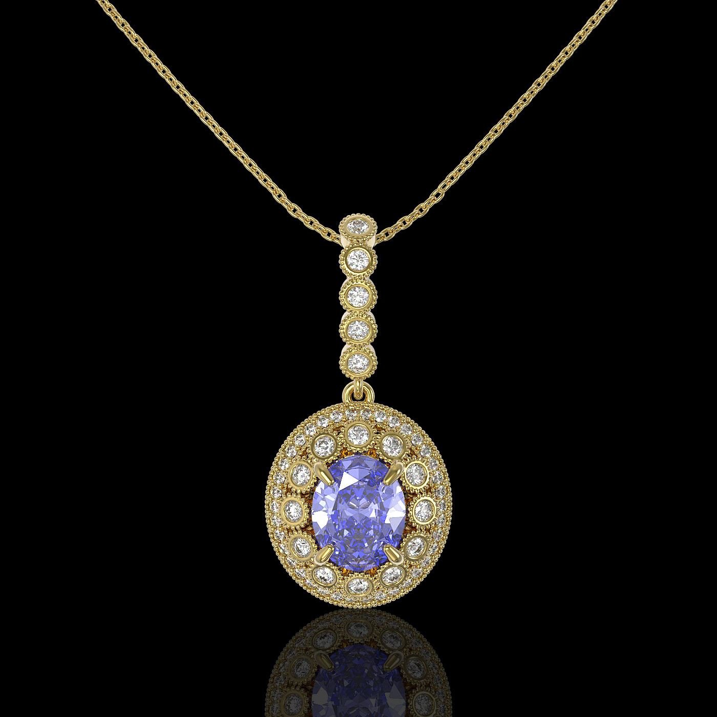 REF-169N8F - SKU: 43666 ---- 4.77 ctw Tanzanite & Diamond Victorian Necklace 14K Yellow Gold