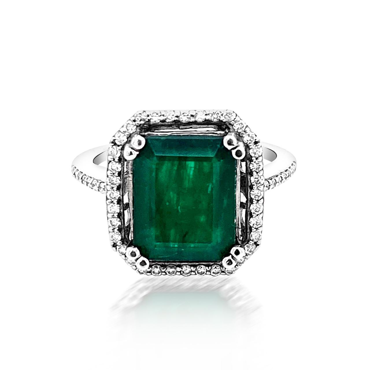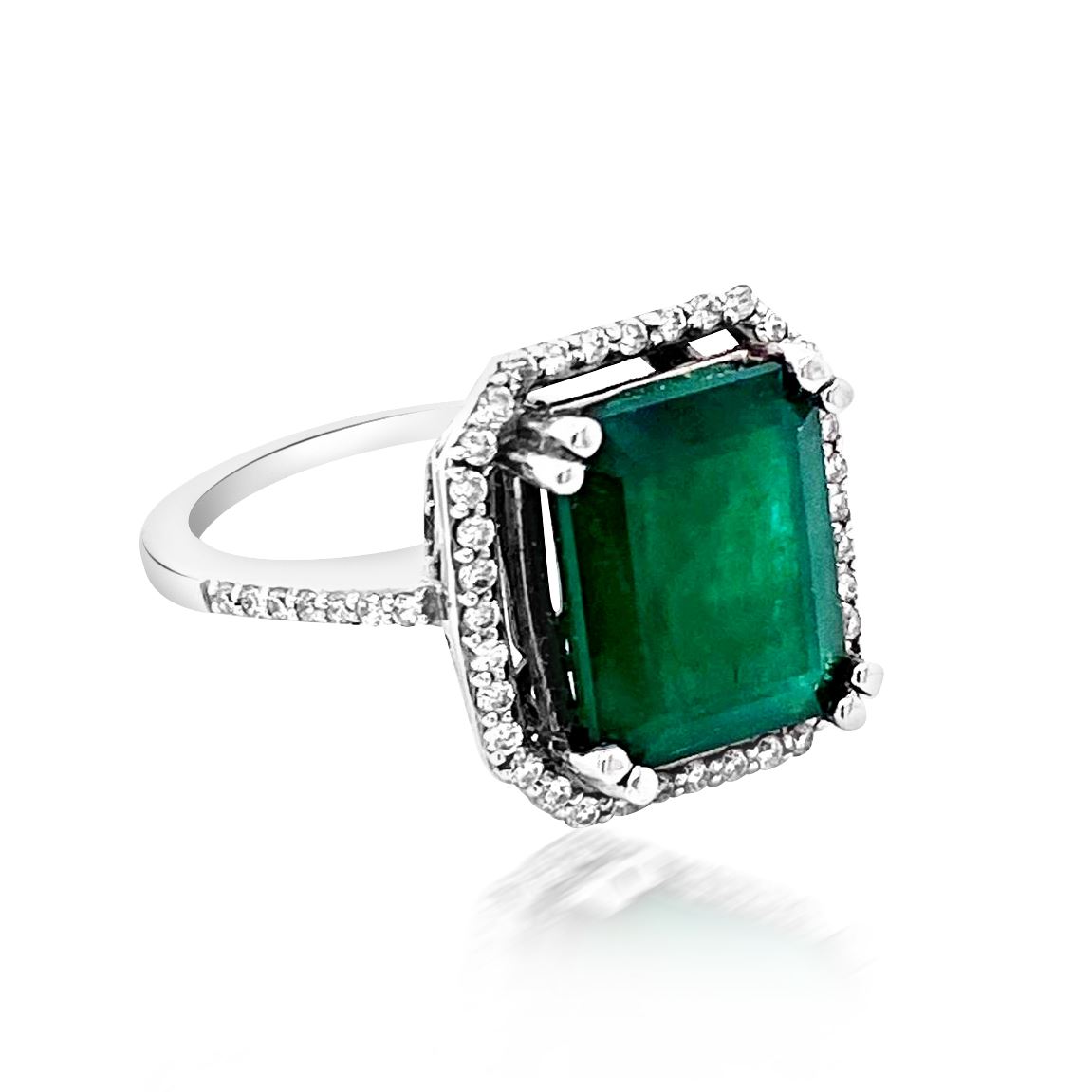 4.77ct Natural Emerald 14K White Gold 4.25gm Diamond 0.31ct Ring #PJ17530