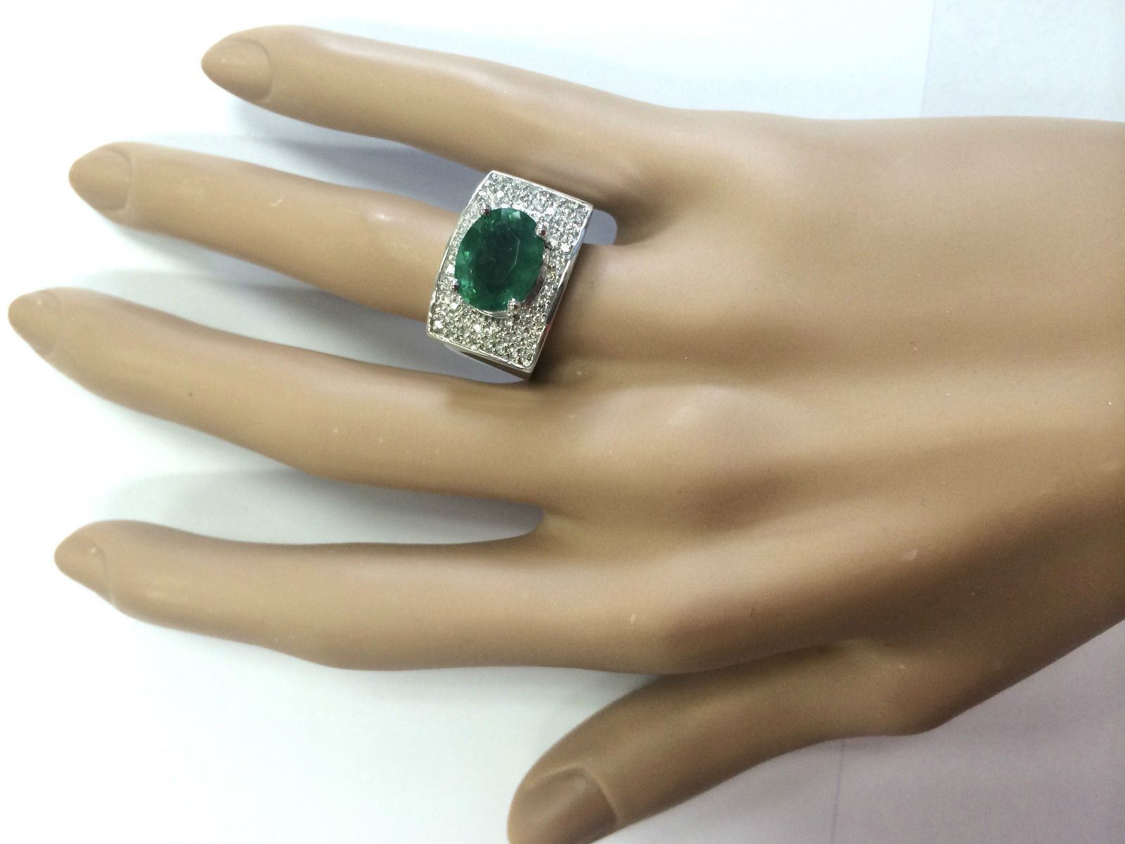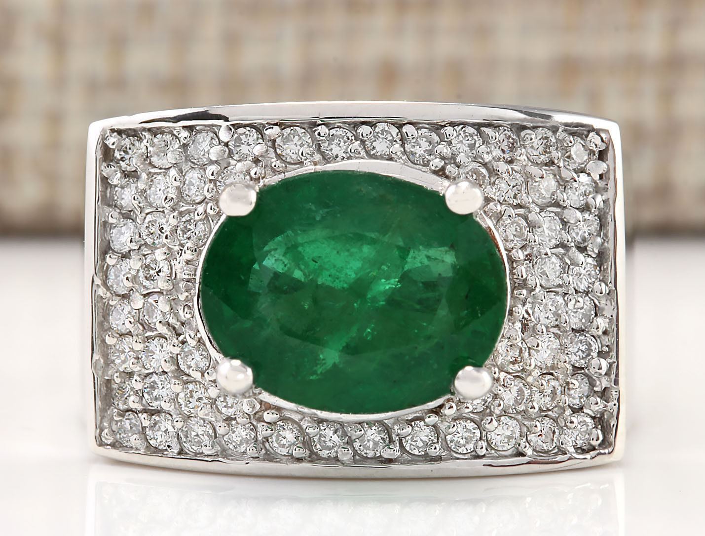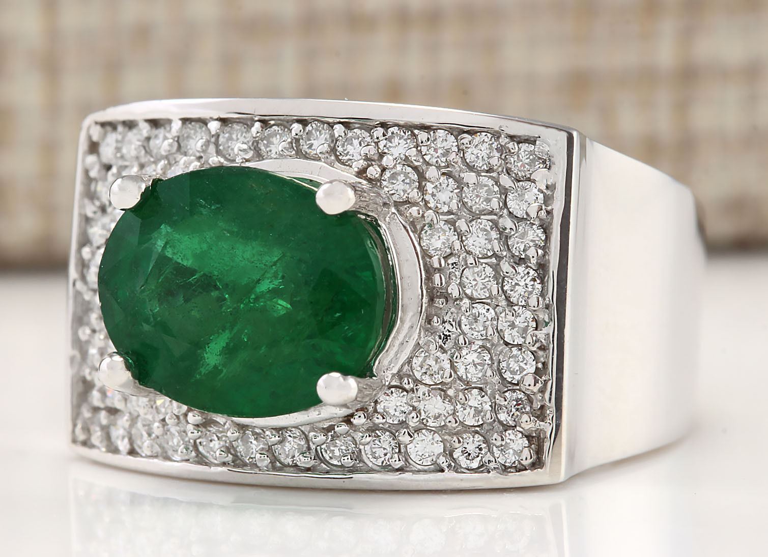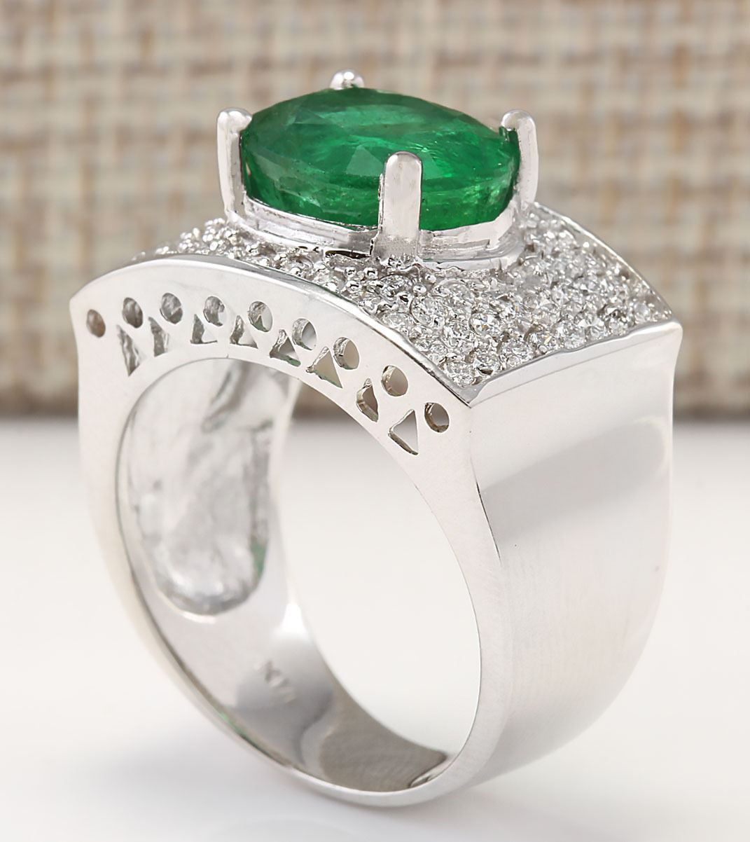 4.78 CTW Natural Emerald And Diamond Ring In 18K White Gold