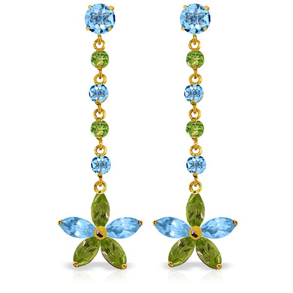 Genuine 14K Yellow Gold 4.8 ctw Blue Topaz & Peridot Earrings