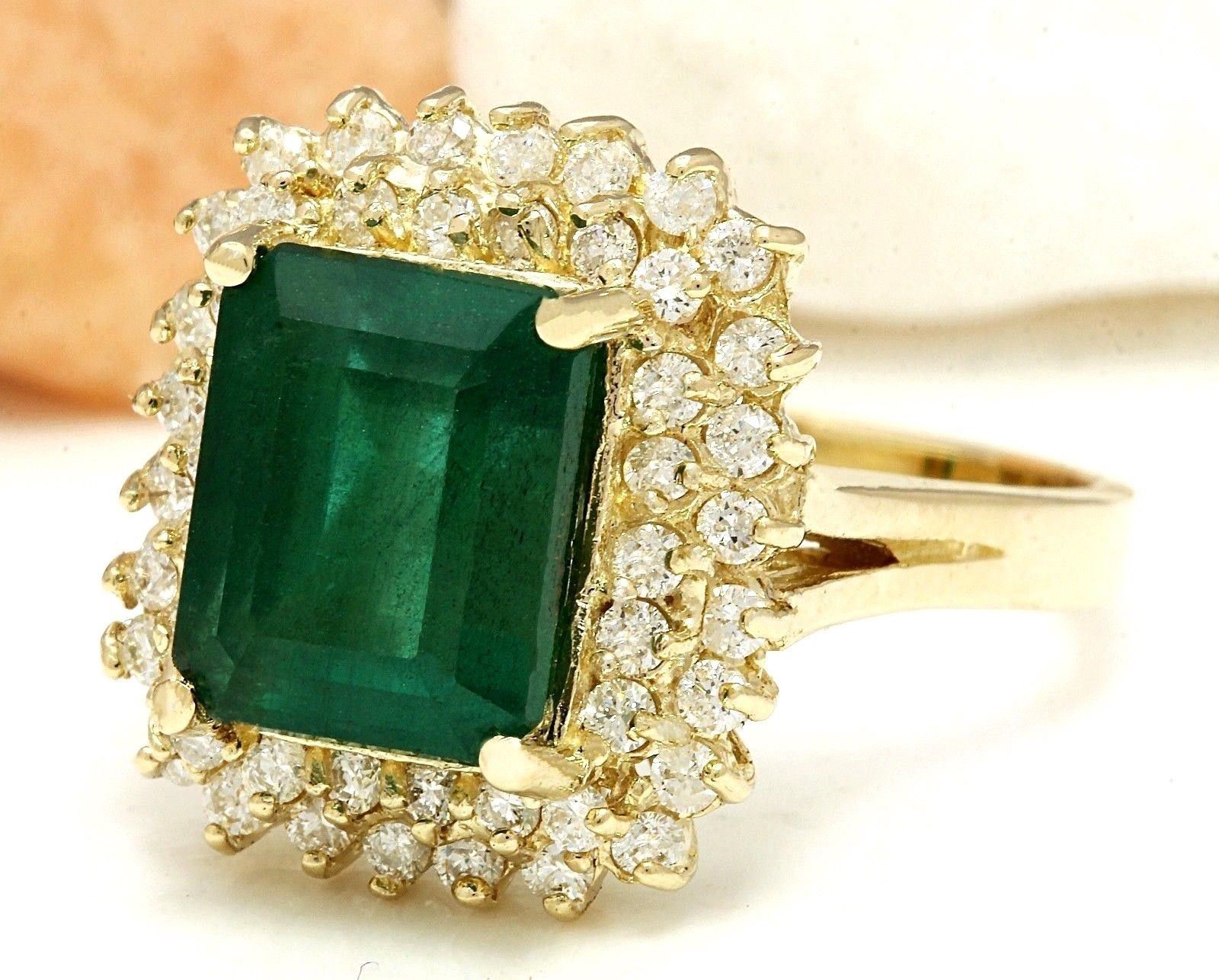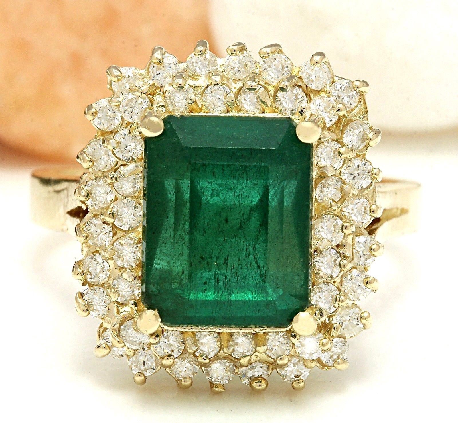 4.80 Carat Natural Emerald 18K Solid Yellow Gold Diamond Ring
