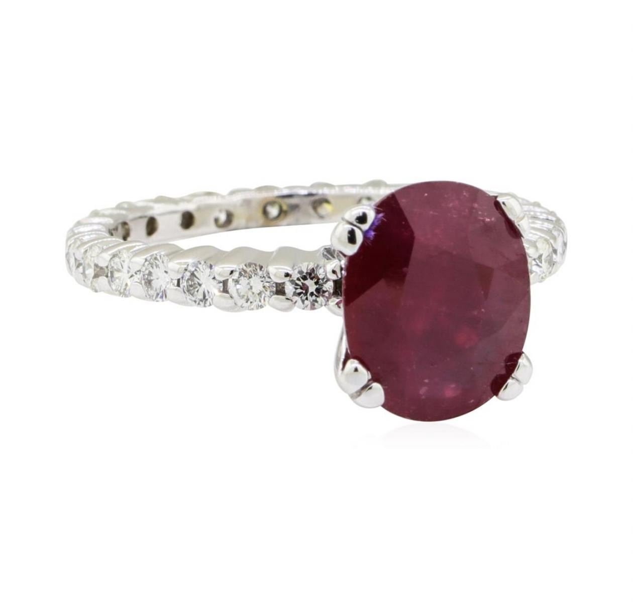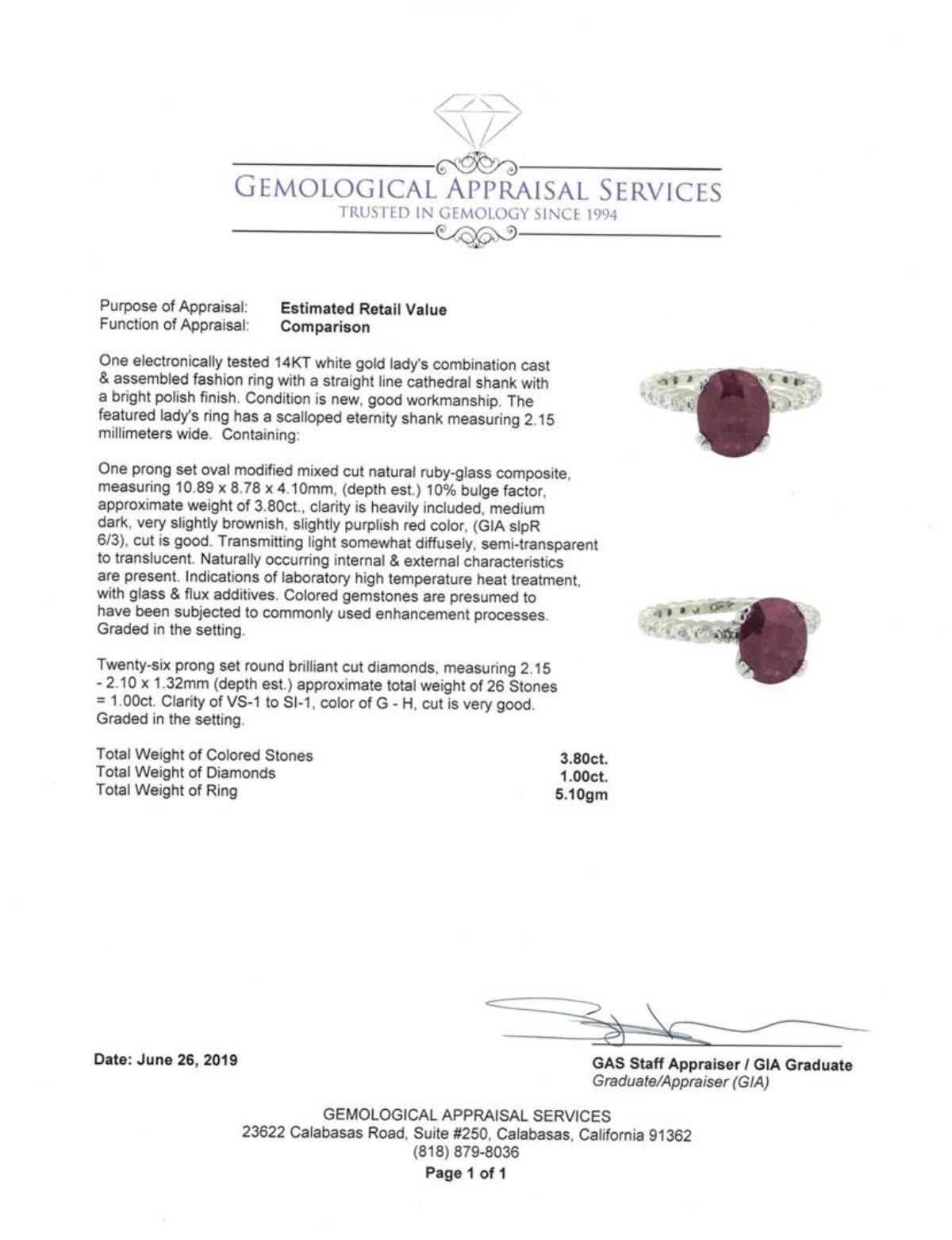 One electronically tested 14KT white gold lady's combination cast & assembled fashion ring with a straight line cathedral shank with a bright polish finish. The featured lady's ring has a scalloped eternity shank measuring 2.15 millimeters wide. Condition