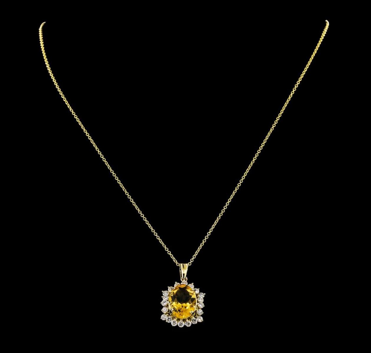 One Citrine Quartz and Diamond Pendant with Chain including: 14KT Yellow Gold weighing a total of 3.37 grams, Citrine Quartz weighing a total of 4.82ct and 20 Diamonds weighing a total of 1.01ctw.