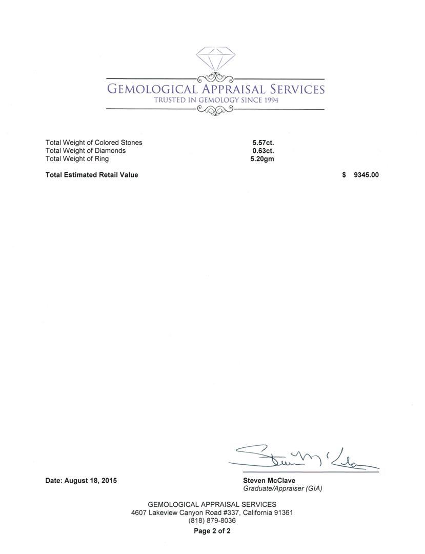 Regarding Appraised Jewelry, Watches and Loose Stones –