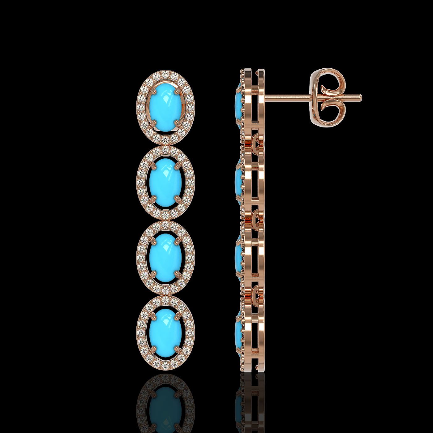 REF-110M9G - SKU: 46005 ---- 4.84 ctw Turquoise & Diamond Micro Pave Halo Earrings 10k Rose Gold